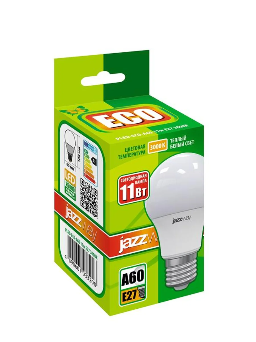 Лампа светодиодная PLED-ECO 11Вт A60 грушевидная 3000К тепл. бел. E27 880лм 230В JazzWay 1033208 - купить в KeepBuilding | KeepBuilding