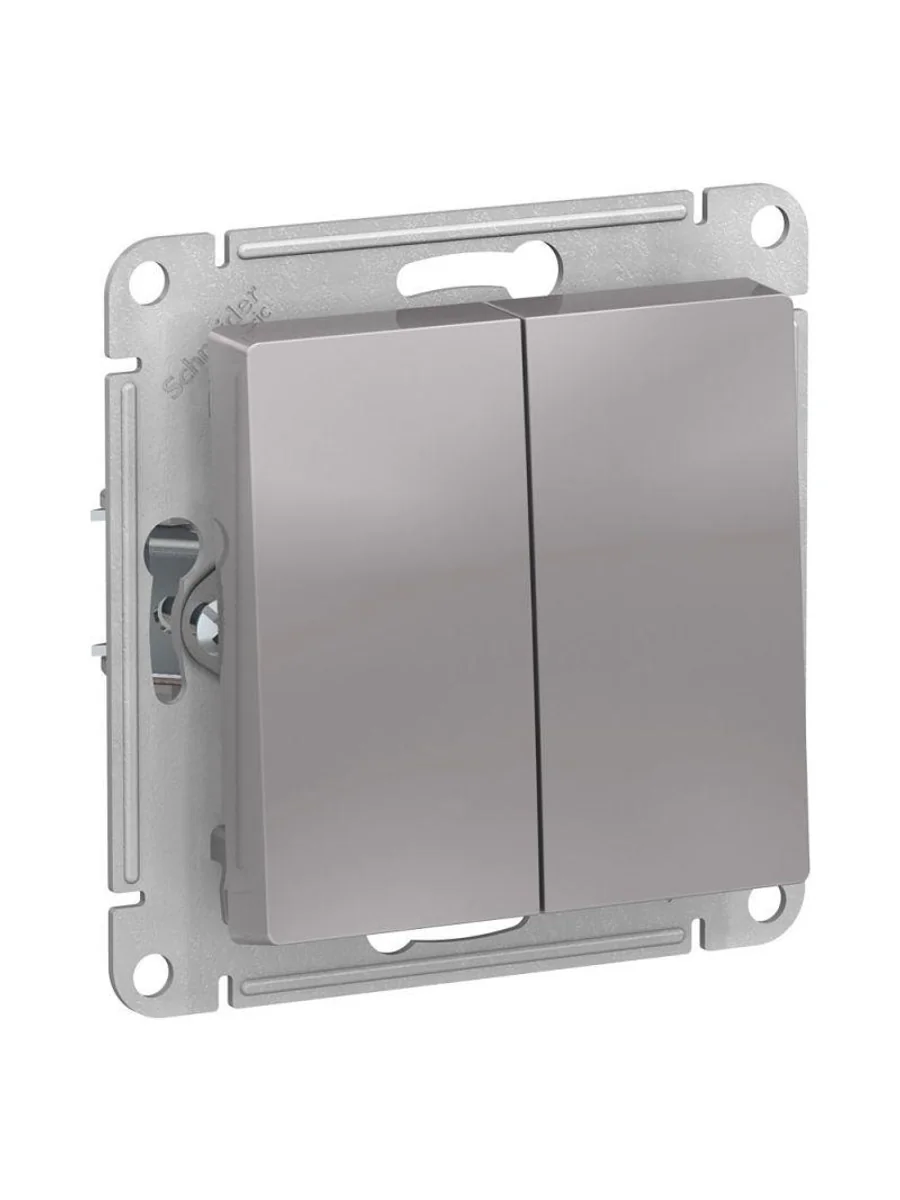 Механизм Systeme Electric (ранее Schneider Electric) серии AtlasDesign Aqua в цвете алюминий выключателя 2-клавишного подходит для сетей 250 В, на ток 10 А. Изделие со степенью защиты IP44 обеспечит безопасность использования в ванной и на кухне. Несмотря на внешнее сходство, конструкция рамок серии AtlasDesign Aqua отличается от конструкции рамок AtlasDesign. Механизмы и рамки со степенью защиты IP20 несовместимы с механизмами и рамками со степенью защиты IP44.
