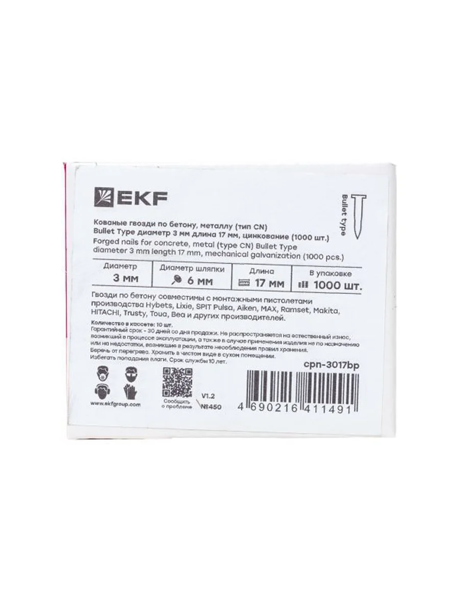Гвоздь кованый для монтажн. пистолета по бетону металлу Bullet Type 3х17 цинк. (уп.1000шт) Expert EKF cpn-3017bp