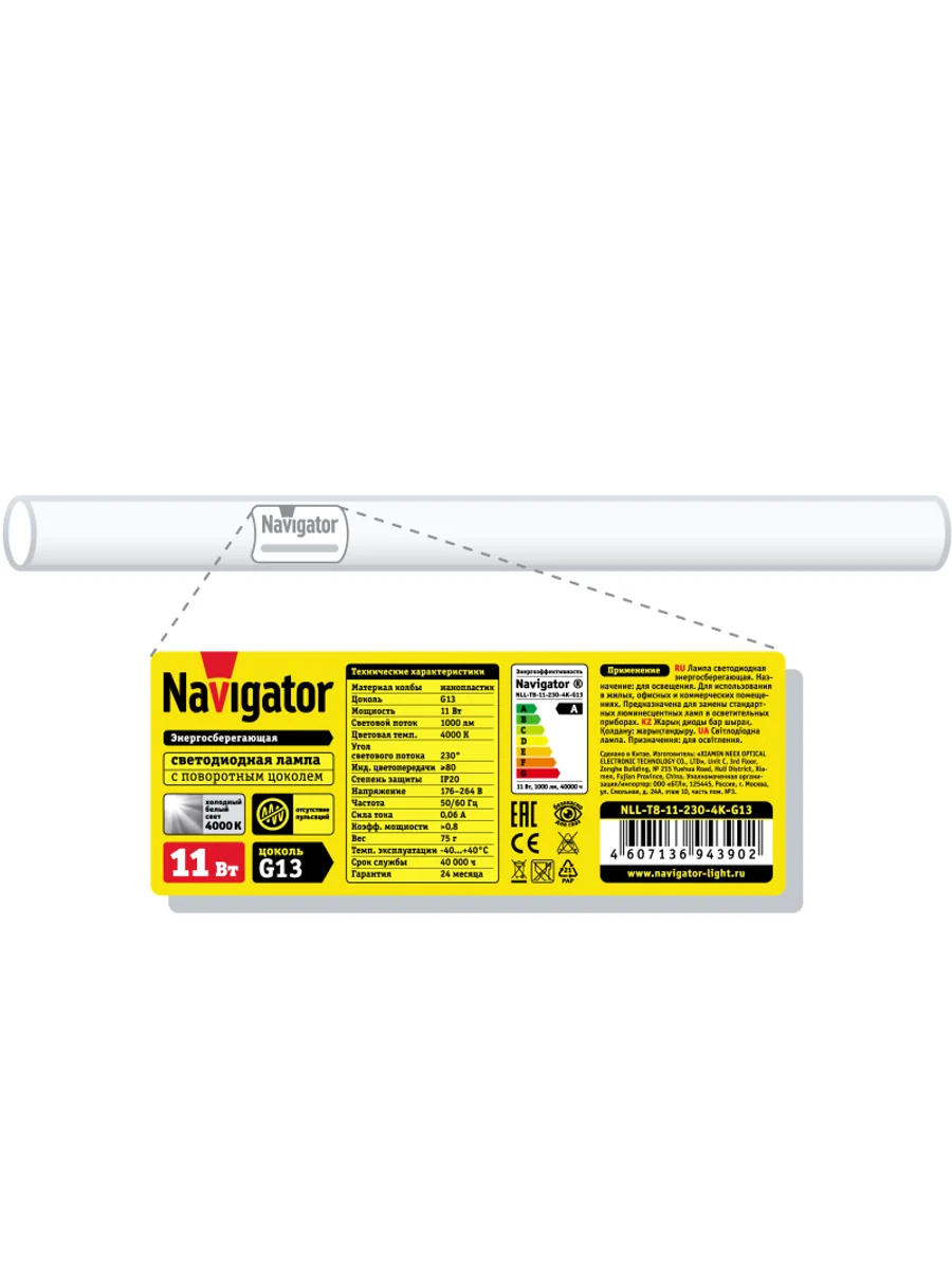 Лампа светодиодная 94 390 NLL-T8-11-230-4K-G13 11Вт линейная 4000К нейтр. бел. G13 1000лм 176-264В поворотн. Navigator 94390 - купить в KeepBuilding | KeepBuilding