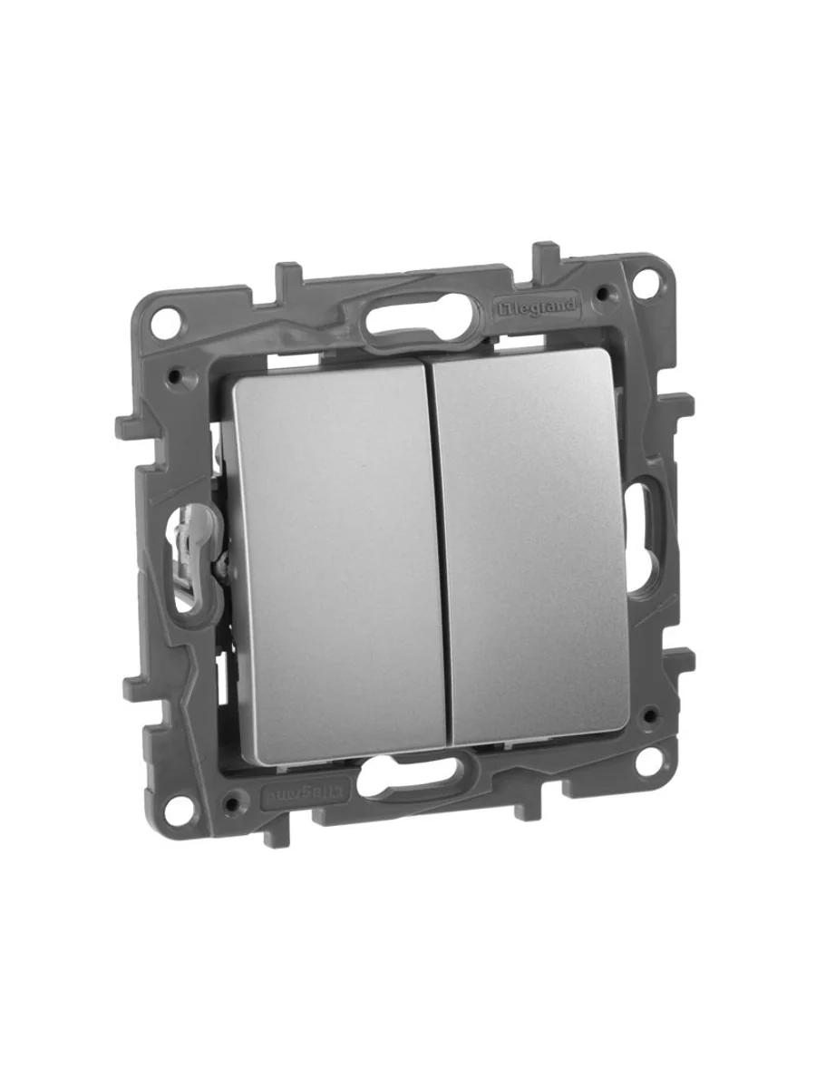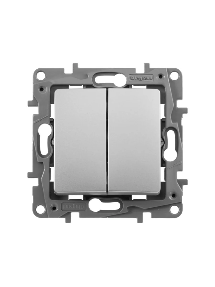 Выключатель двухклавишный ETIKA для скрытого монтажа, номинальный ток 10 А, предназначен для управления двумя электрическими цепями.
