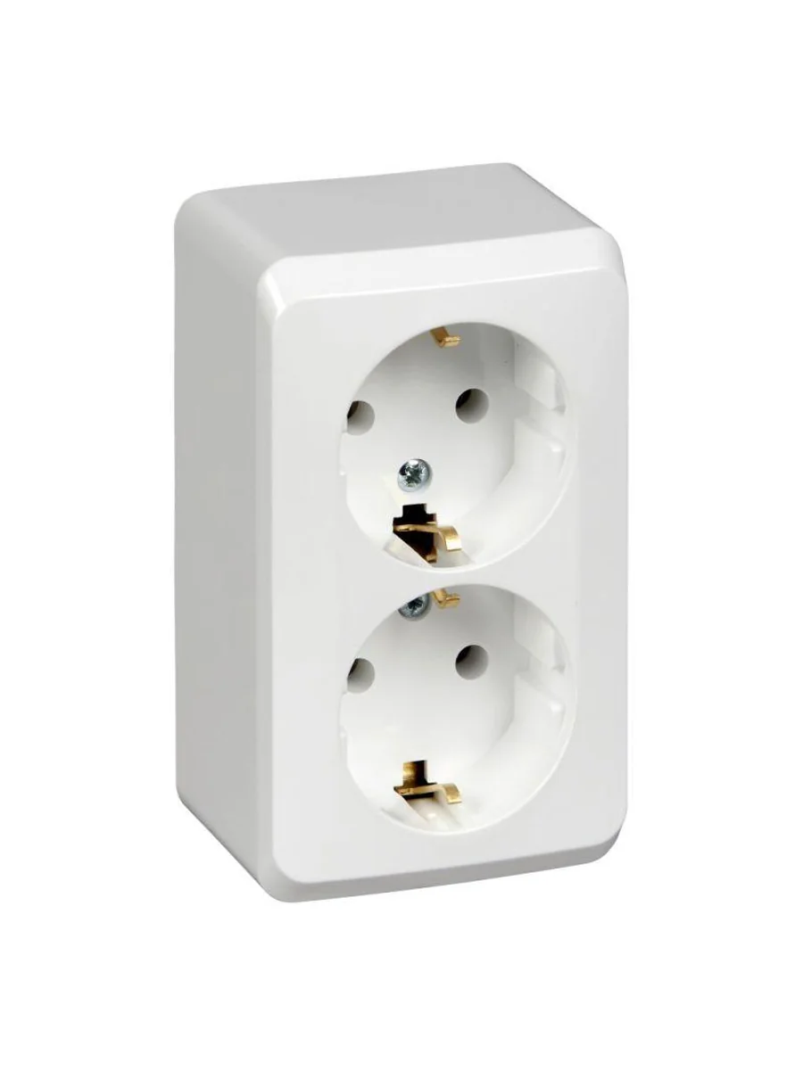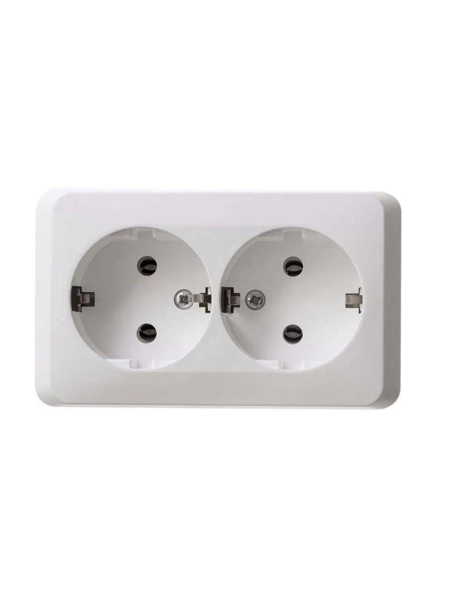 Розетка Systeme Electric (ранее Schneider Electric) ЭТЮД (белый, открытой установки) двухместная с заземлением, без шторок предназначена для применения в сетях до 250В, на ток до 16А. Двухместная розетка позволяет подключить два устройства в одном месте. Заземление обеспечивает безопасность при косвенном прикосновении. Она проста в установке и удобна в применении. Сделано в России.
