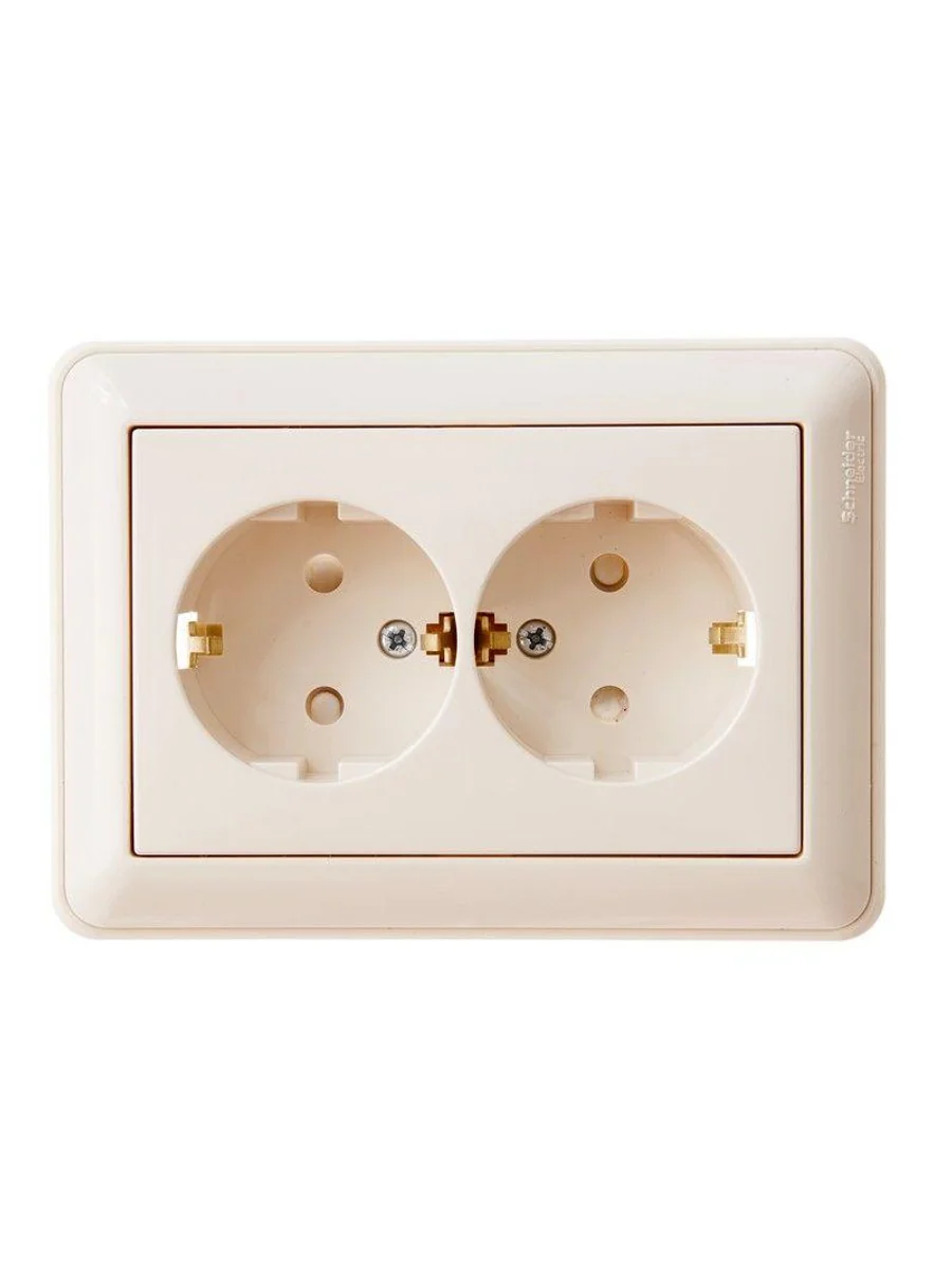 Розетка Systeme Electric (ранее Schneider Electric) W59 (в сборе, цвет слоновая кость) двойнаяс заземлением и шторками подходит для сетей 250 В, на ток 16 А. - Заземляющий контакт обеспечивает дополнительную защиту от удара электрическим током. При наличии заземления электрический потенциал уходит в землю, защищая человека. - Шторки обеспечивают дополнительную безопасность в доме, где находятся дети. - Корпус изделия выполнен из высококачественного ABS-пластика.