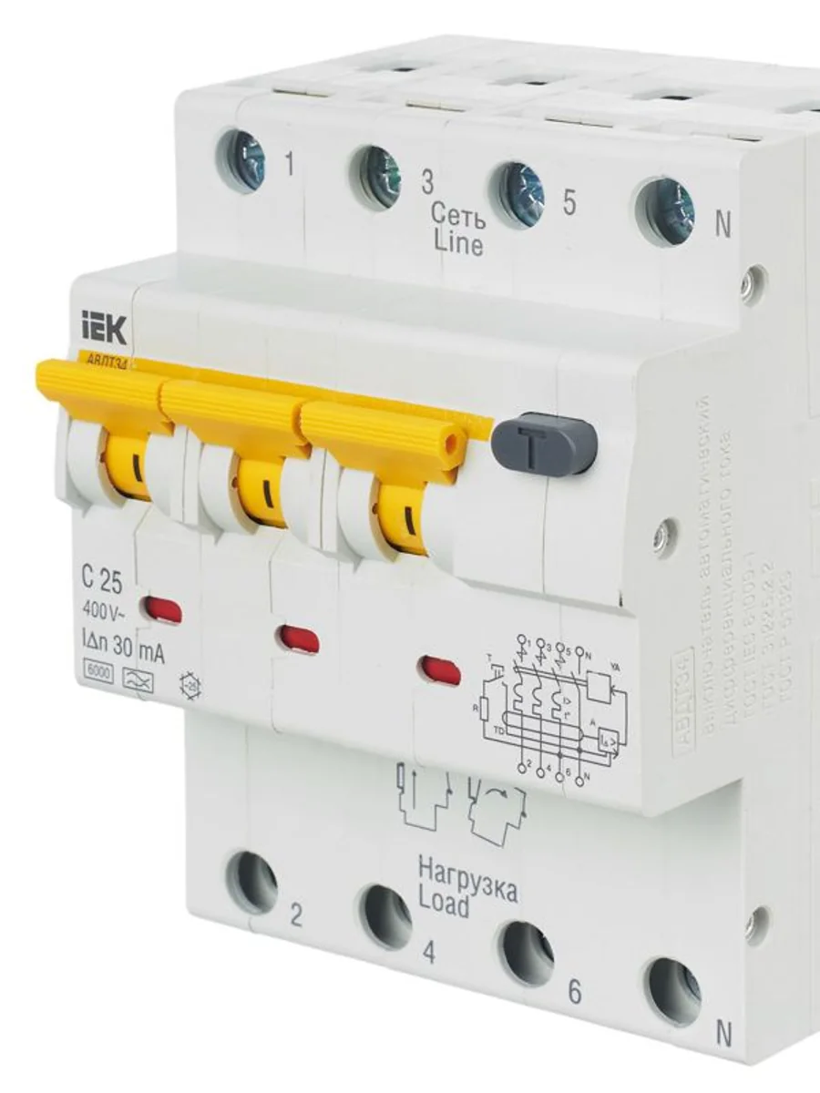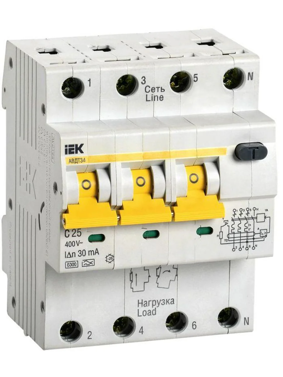 Выключатель автоматический дифференциального тока 4п (3P+N) C 25А 30мА тип A 6кА АВДТ-34 KARAT IEK MAD22-6-025-C-30 - купить в KeepBuilding | KeepBuilding