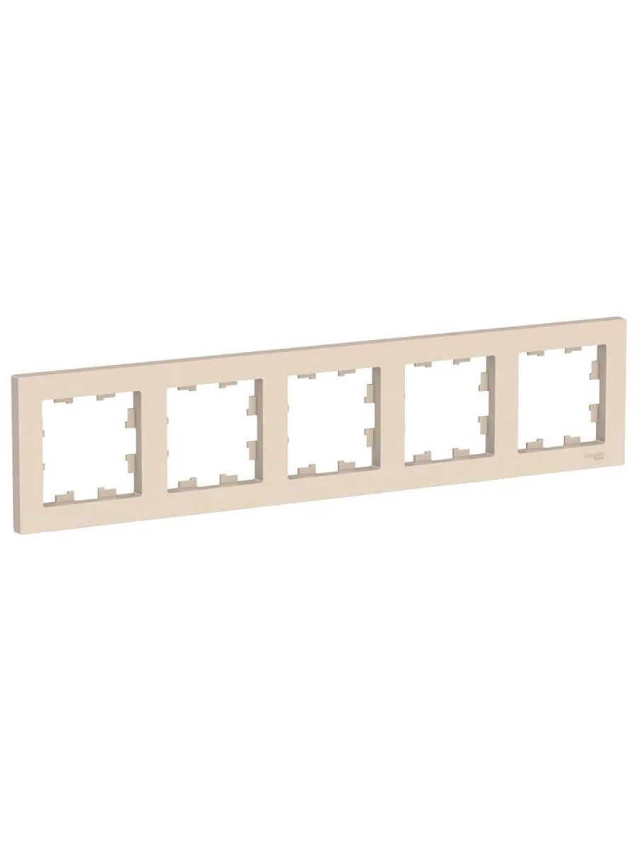 Рамка Systeme Electric серии AtlasDesign в бежевом цвете пятиместная. - Устанавливается в вертикальном и горизонтальном положениях. - Лицевые детали из качественного ABS-пластика, устойчивого к царапинам и УФ-излучению. - Позволяет гармонично вписать электроустановочное изделие в интерьер помещения (ранее Schneider Electric NU201044).