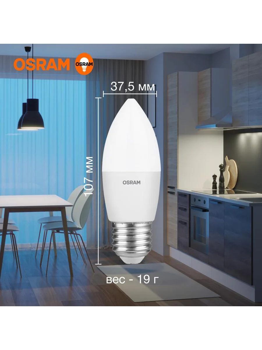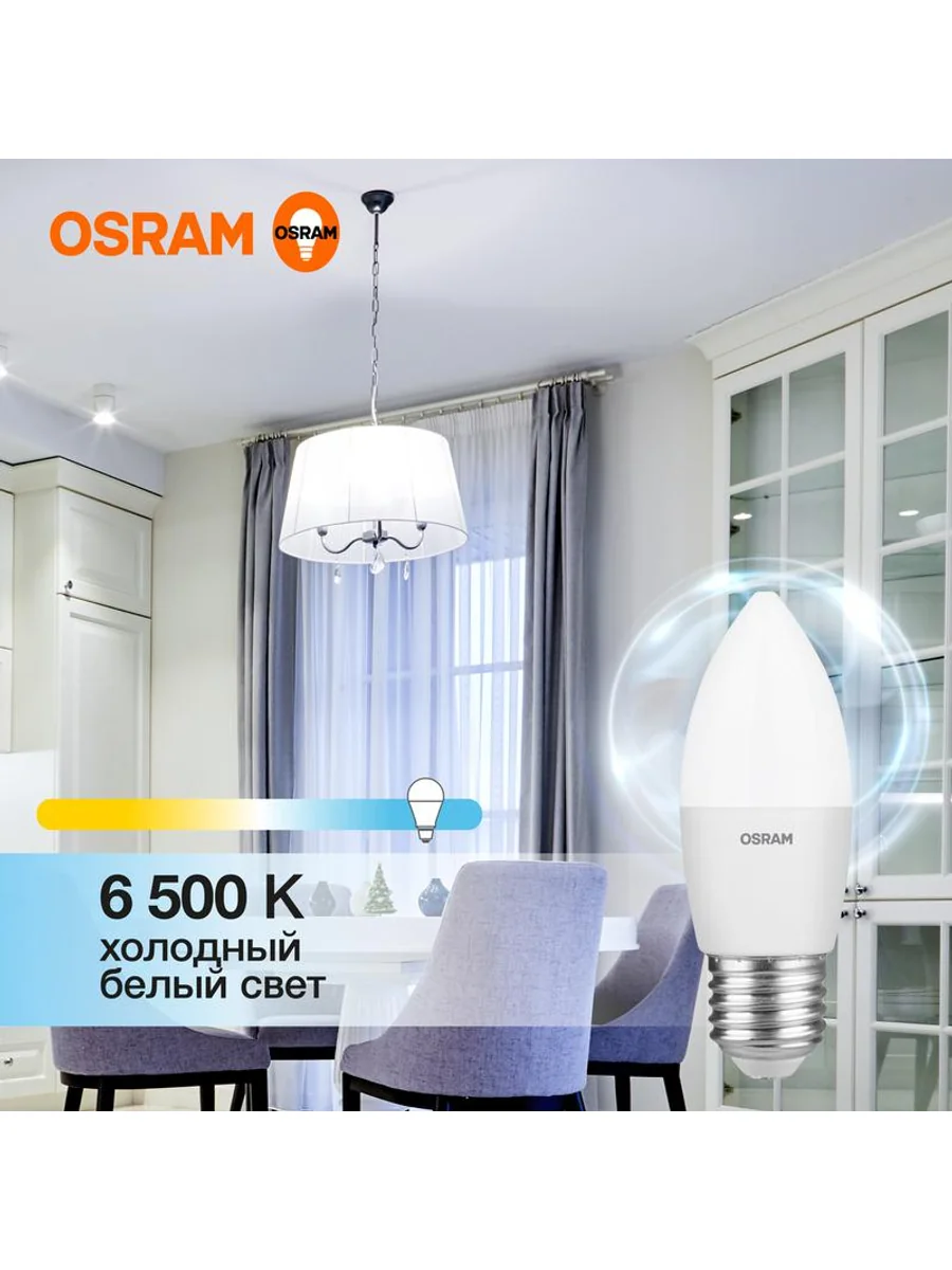 Светодиодные лампы OSRAM - разумная замена традиционным лампам накаливания или галогенным лампам. Светодиодные лампы OSRAM снижают затраты на освещение до 90% при сохранении привычного уровня освещенности. Эта лампа OSRAM серии LED Value выполнена в форме колбы B ("свеча") с цоколем E27. Материал колбы - пластик, исполнение - матовое. Световой поток 800 люмен, что соответствует лампе накаливания на 75 Вт. Такие лампы применяются для внутреннего освещения, хотя в закрытом светильнике можно использовать и на улице. Эта лампа излучает холодный белый свет, угол пучка - широкий. Качество света на высоте: низкие пульсации защищают глаза, а высокий индекс цветопередачи позволяет видеть мир в его истинном цвете. Кроме того, лампы OSRAM полностью безопасны для здоровья, поскольку в них нет опасных материалов по европейскому стандарту RoHS, а также они не производят вредных электромагнитных излучений, что подтверждено ЭМС (сертификат электромагнитной совместимости). Лампа проработает долго: срок службы - 25000 часов, 2 года гарантии. Светодиодные лампы OSRAM - умный выбор для здоровья семьи и кошелька!