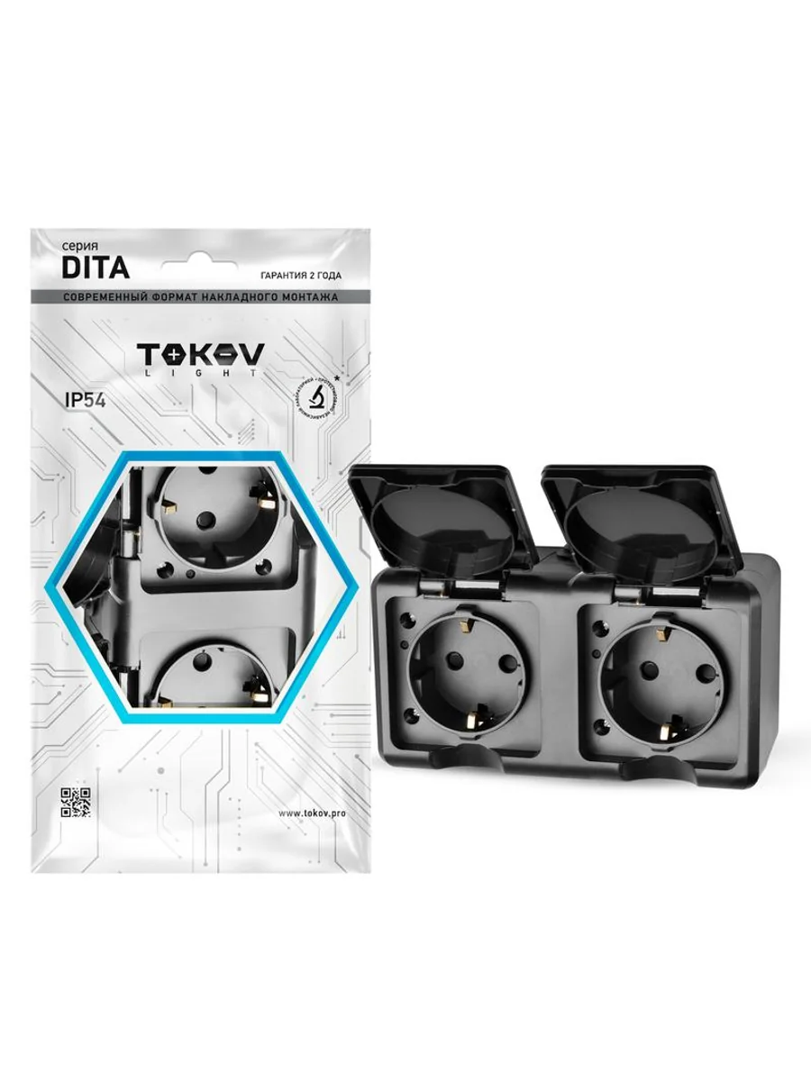 Розетка 2-м ОП Dita 16А IP54 250В с заземл. с крышкой карбон TOKOV ELECTRIC TKL-DT-R2Z-C14-IP54 - купить в KeepBuilding | KeepBuilding