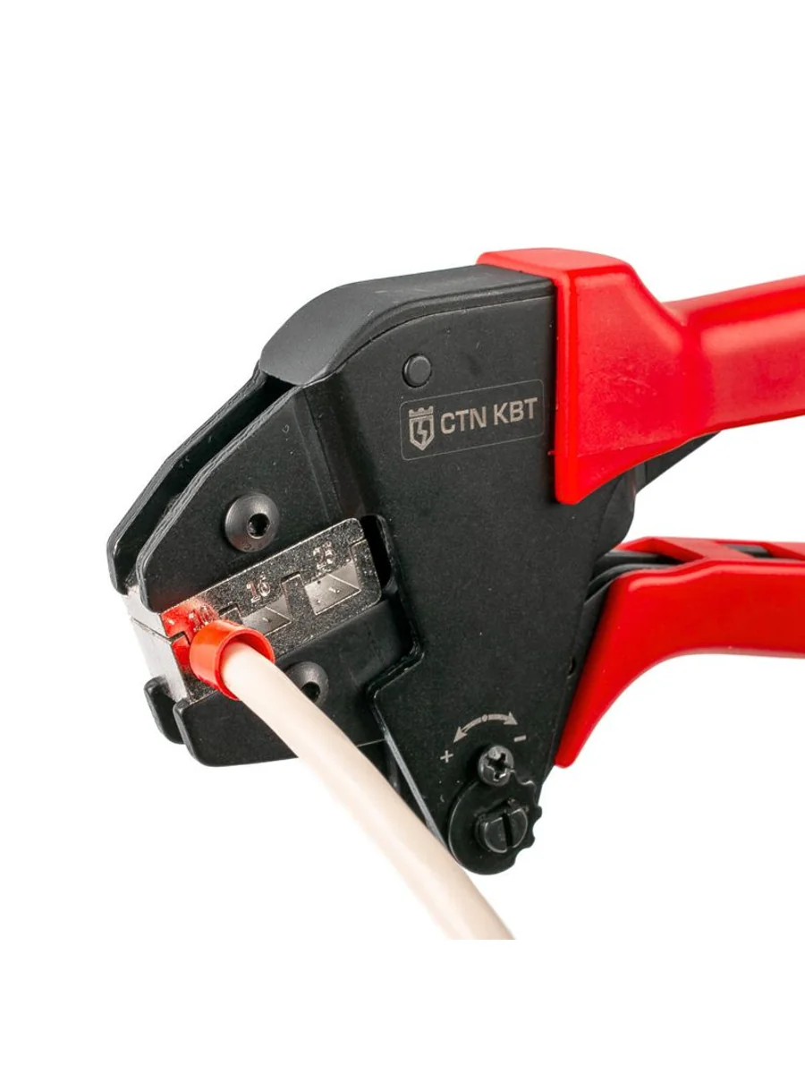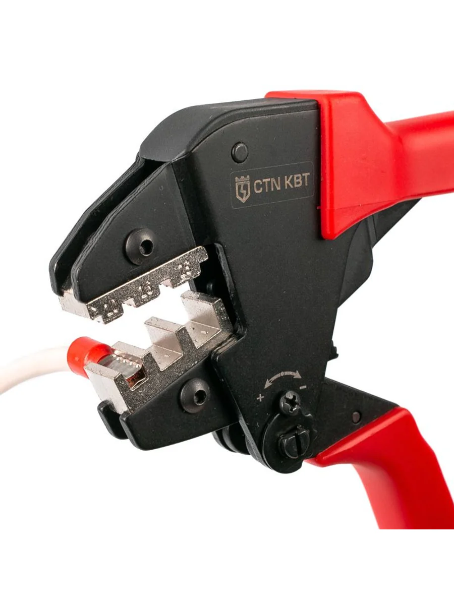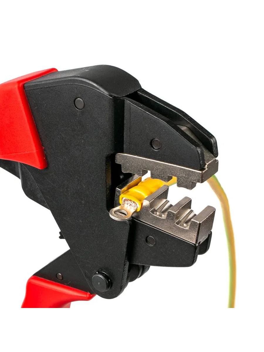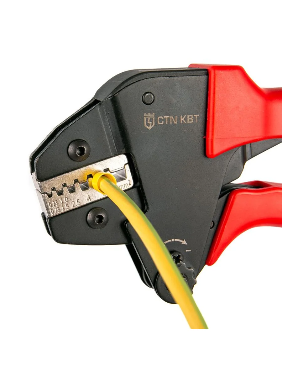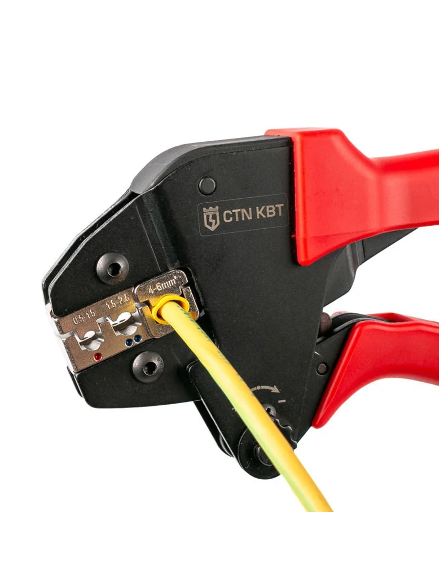 • Состав набора: • пресс-клещи CTN с параллельным ходом матриц • прочная сумка на молнии • набор из 5 сменных матриц: • Изолированные наконечники: НКИ, НКИ(н), НВИ, НШКИ, НШПИ, ГСИ, ГСИ(н), ВРПИ, РШИ-П, РШИ-МСечения: 0.5–6.0 мм2Трехпозиционная матрицаПрофиль обжима:овальный двухконтурный • Втулочные наконечники: НШВИ, НШВСечения: 0.25–10 мм2Шестипозиционная матрицаПрофиль обжима:трапециевидный • Втулочные наконечники: НШВИ, НШВСечения: 10–25 мм2Трехпозиционная матрицаПрофиль обжима: трапециевидный • Неизолированные разъемы (автоклеммы) шириной 2.8/4.8/6.3/7.5/9.2 мм, наконечники НК, гильзы ГССечения: 0.5–6.0 мм2Четырехпозиционная матрицаПрофиль обжима: лепестковый двухконтурный • Неизолированные медные наконечникиСечения: 0.5–10 мм2Четырехпозиционная матрицаПрофиль обжима: клиновидный • Пресс-клещи CTN несовместимы с матрицами МПК (КВТ) • Параллельное смыкание матриц, гарантирующее равномерный обжим и высокое качество опрессовки • Усовершенствованный рычажный механизм. • Усилие при опрессовке на 30% меньше, чем при использовании аналогичного инструмента • Устройство разблокировки храпового механизма • Материал корпуса: 3-миллиметровая сталь • Покрытие корпуса: тефлон • Уникальное, стойкое к абразии и коррозии тефлоновое покрытие корпуса, обеспечивает долговечность инструмента и исключительный внешний вид • Удлиненные рукоятки • Регулятор прижимного усилия матриц • Сумка имеет 4 кармана с возможностью размещения 8 матриц плюс одна матрица в инструменте • Прочная сумка с двумя карманами на лицевой стороне, кистевым ремнем и лямкой для крепления на пояс • Материал сумки: полиэстер 1680D Оксфорд • Вес инструмента/набора: 0.44/1.00 кг • Длина пресс-клещей: 200 мм • Габариты сумки: 295х250х60 мм