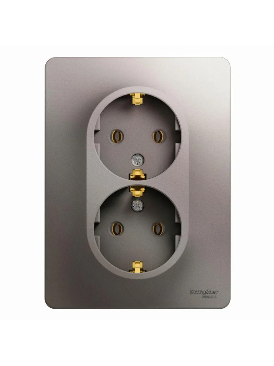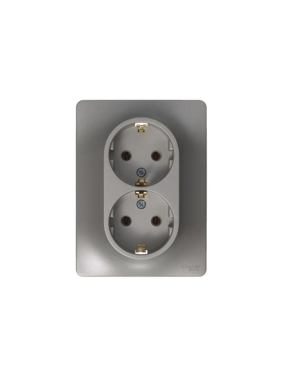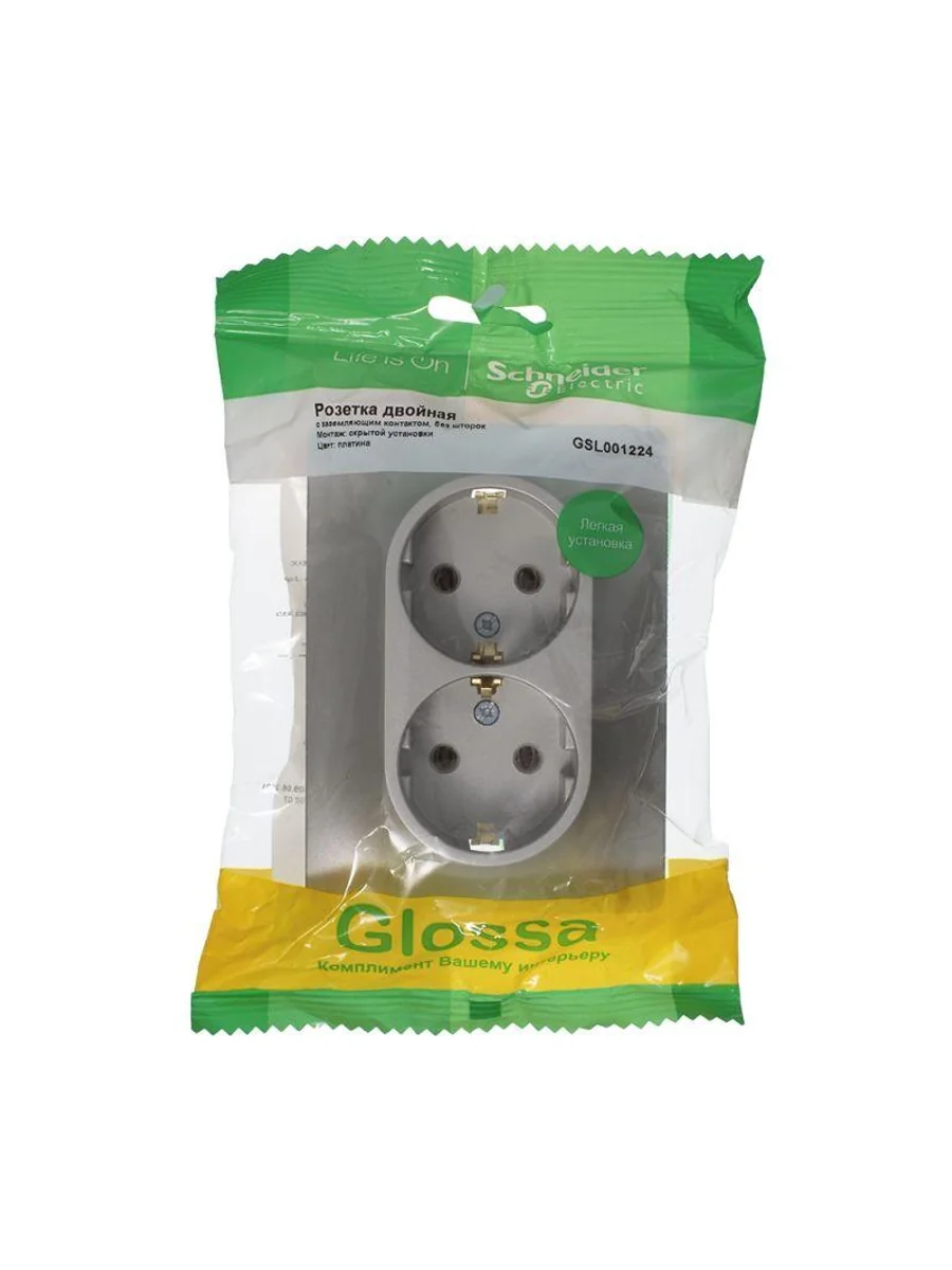 Розетка двойная Systeme Electric (ранее Schneider Electric) серии Glossa (в сборе, цвет платина) с заземлением, без шторок подходит для сетей 250 В, на ток 16 А. - Заземляющий контакт обеспечивает дополнительную защиту от удара электрическим током. При наличии заземления электрический потенциал уходит в землю, защищая человека. - Выполнен из материала PС+ASA, стойкого к УФ-излучению и появлению царапин. - Двойная розетка позволяет подключить два устройства в одном месте.