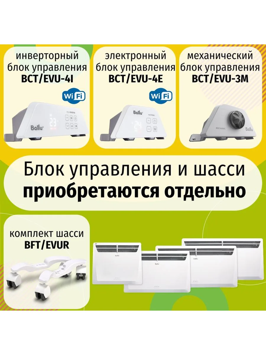 Серия конвекторов Evolution Transformer System с инновационным нагревательным элементом HEDGEHOG позволяет самостоятельно сформировать набор различных опций и аксессуаров. Сначала подберите отопительный модуль необходимой мощности на базе конвектора Evolution Transformer System. Затем – блок управления: механический, электронный или с технологией digital INVERTER. Завершающий этап – выбор типа установки конвектора: напольный или настенный. Так, в вашем распоряжении оказывается конвектор, идеально подходящий именно вам. В комплект входит только отопительный модуль, оснащенный нагревательным элементом HEDGEHOG. Для работы конвектора необходимо добавить в комплект один из трех блоков управления (обязательно) и шасси (не обязательно). Эффективен для помещений, площадью до 20 кв.м. ВАЖНО! Блок управления и шасси в комплект не входят.