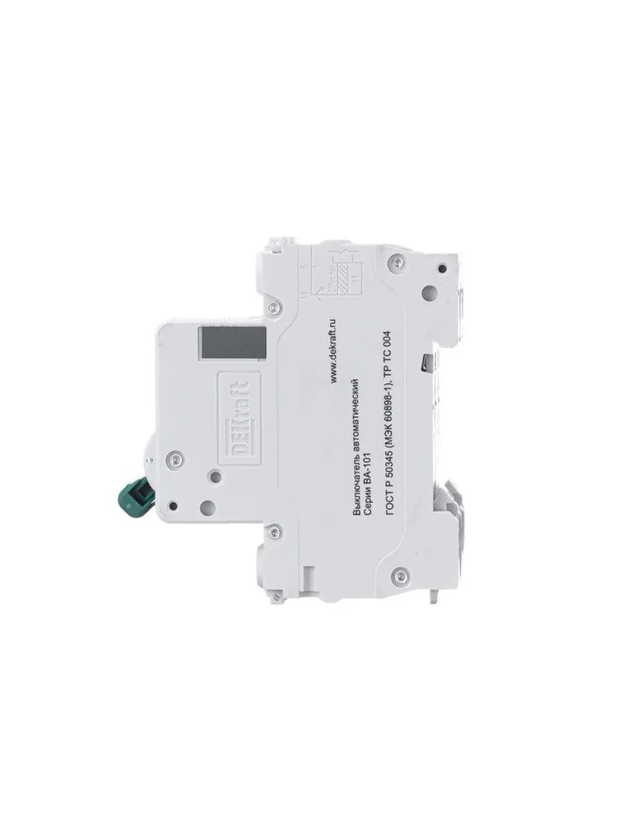 Автоматический выключатель серии ВА-101 Dekraft; 3P; номинальный ток 50 А; характеристика С; отключающая способность 4,5 кА. 5 монолитных заклепок повышают прочность корпуса аппарата. Сплошная лицевая панель обеспечивает безопасность эксплуатации аппарата. Боковые каналы охлаждения повышают стабильность работы при высоких температурах окружающей среды. Есть возможность установки дополнительных аксессуаров с левой стороны устройства. Аппарат на 100% совместим с корпусами Dekraft и Systeme Electric.