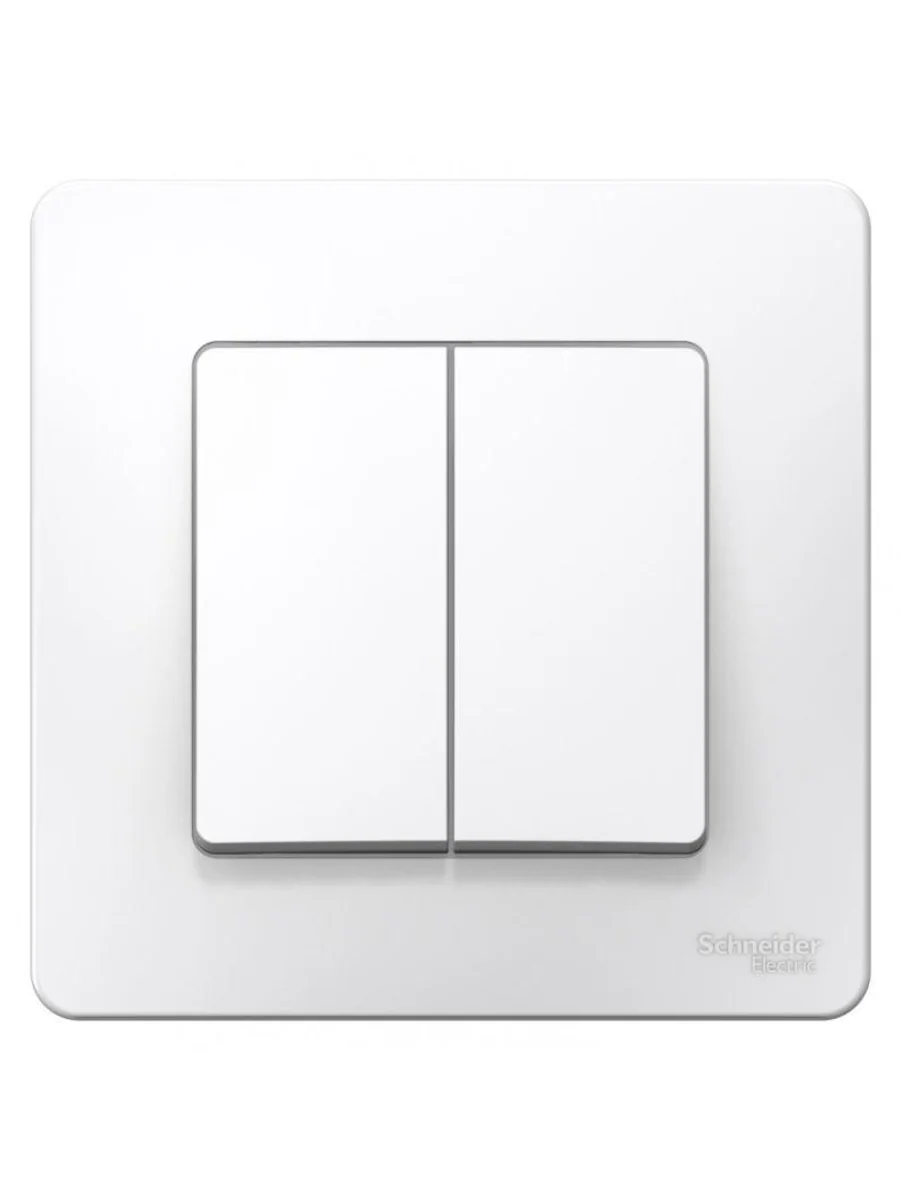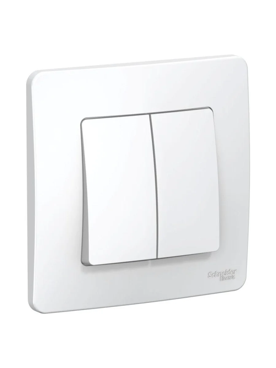 Переключатель Systeme Electric (ранее Schneider Electric) BLANCA (белый, скрытой установки) двухклавишный предназначен для сетей до 250В, на ток до 10А. Подсветка делает его легко находимым в отсутствие освещения. Переключатель позволяет управлять одним источником света из двух точек. Корпус изделия выполнен из ABS-пластика.