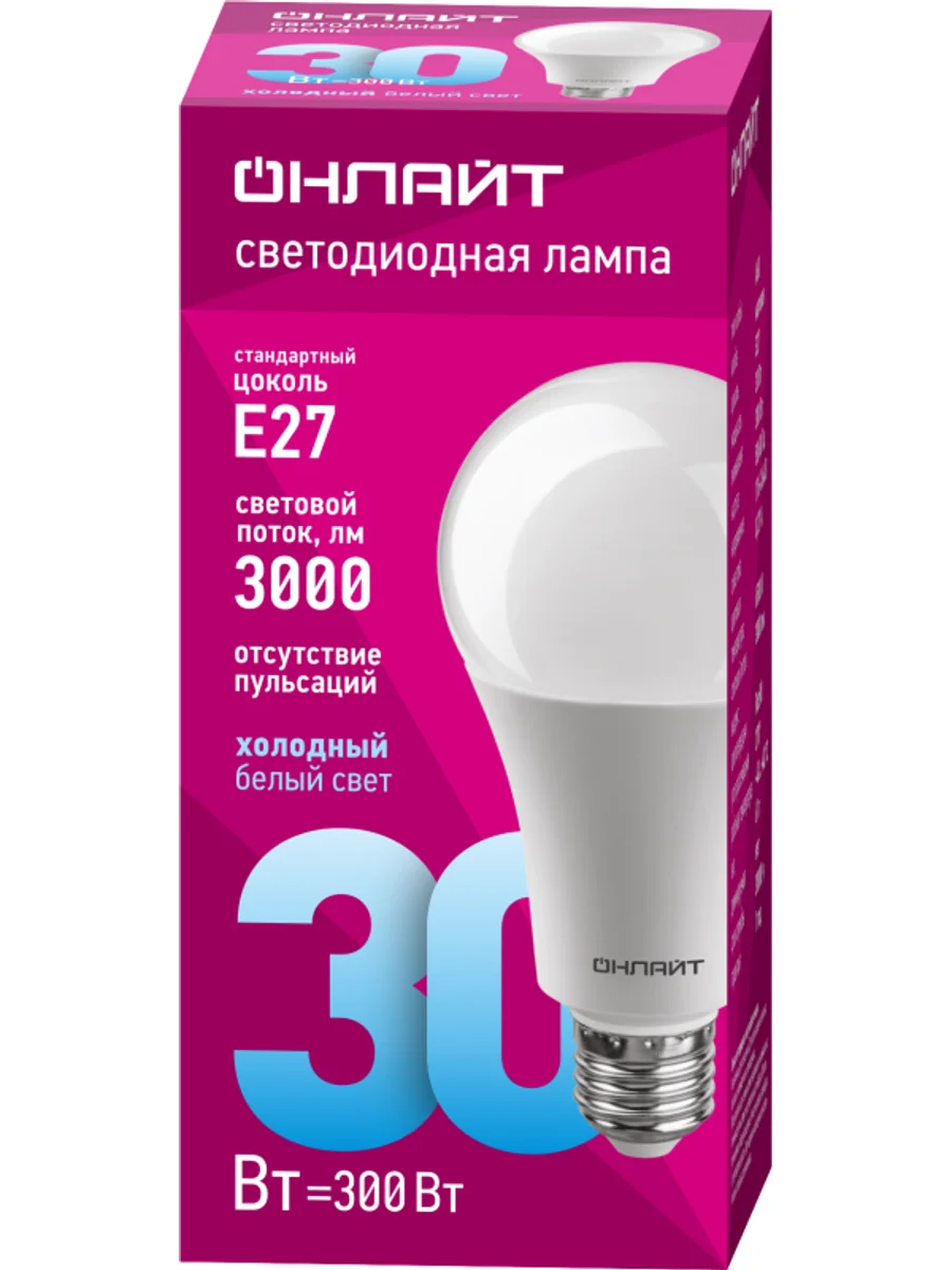 Лампа светодиодная 61 972 OLL-A70-30-230-6.5K-E27 30Вт ОНЛАЙТ 61972 - купить в KeepBuilding | KeepBuilding