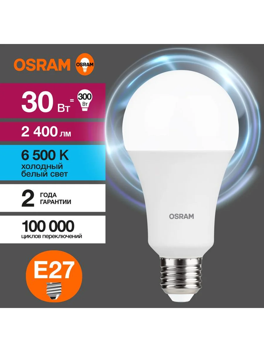 Лампа светодиодная LED Value LVCLA250 30SW/865 230VFR 30Вт A матовая 6500К холод. бел. E27 2400лм угол пучка 180град. 220-240В пластик (замена 300Вт) OSRAM 4058075696808 - купить в KeepBuilding | KeepBuilding