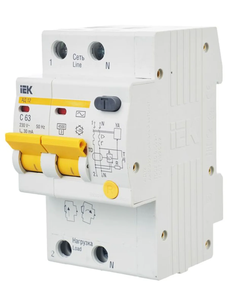 Выключатель автоматический дифференциального тока 2п C 63А 30мА тип AC 4.5кА АД-12 KARAT IEK MAD10-2-063-C-030 - купить в KeepBuilding | KeepBuilding