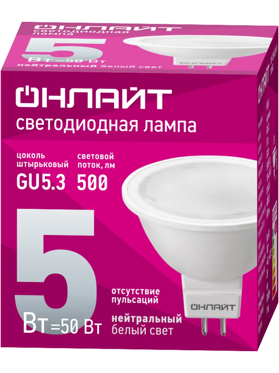 Лампа светодиодная 71 638 OLL-MR16-5-230-4K-GU5.3 5Вт 4000К нейтр. бел. GU5.3 370лм 220-240В ОНЛАЙТ 71638 - купить в KeepBuilding | KeepBuilding
