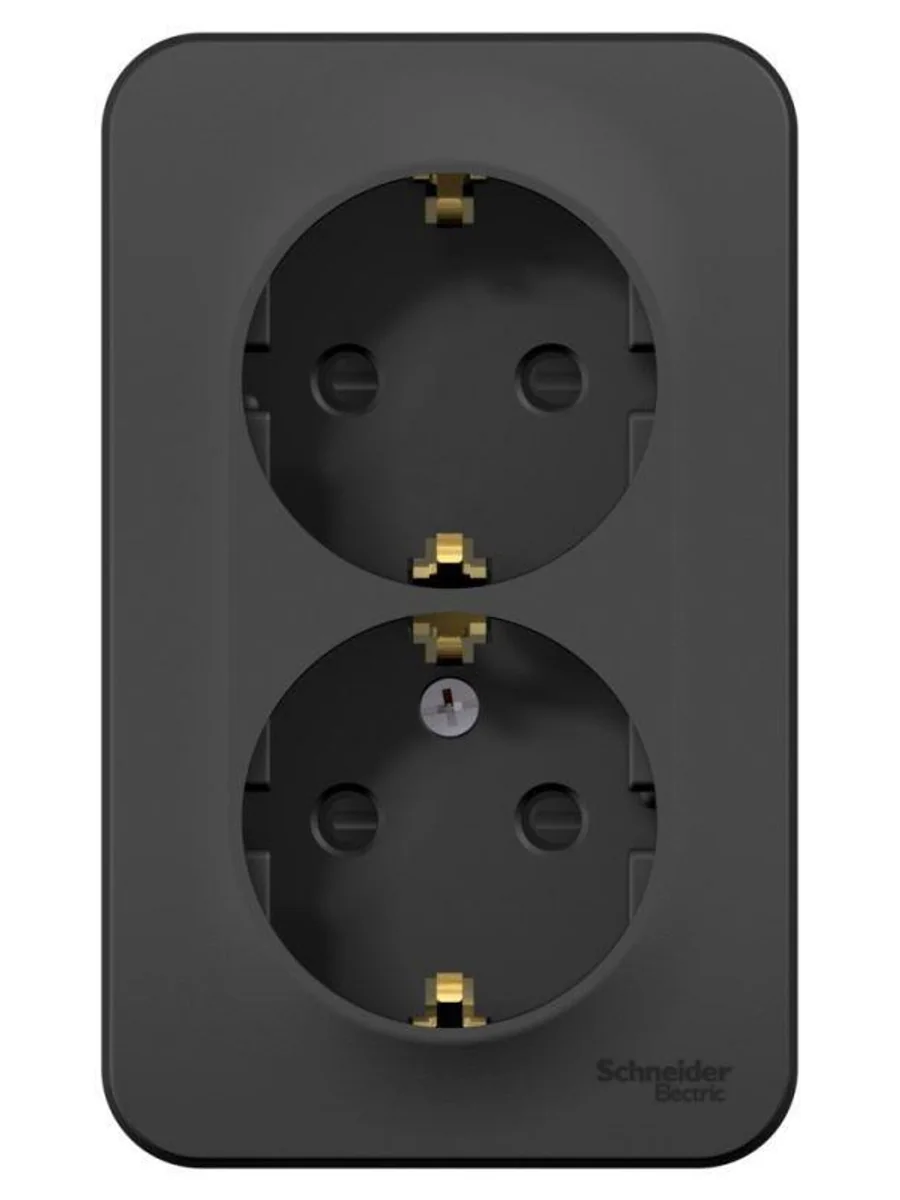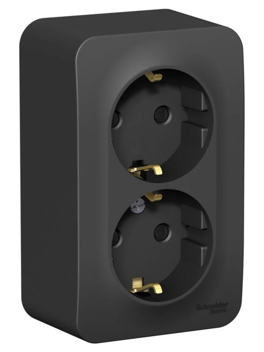 Розетка Systeme Electric (ранее Schneider Electric) BLANCA (антрацит, открытой установки) двухместная, с заземлением, шторками и изолирующей пластиной предназначена для сетей до 250В, на ток до 16А. Двухместная розетка позволяет подключить два устройства в одном месте. Шторки и заземление обеспечивают дополнительную безопасность. Корпус изделия выполнен из ABS-пластика.