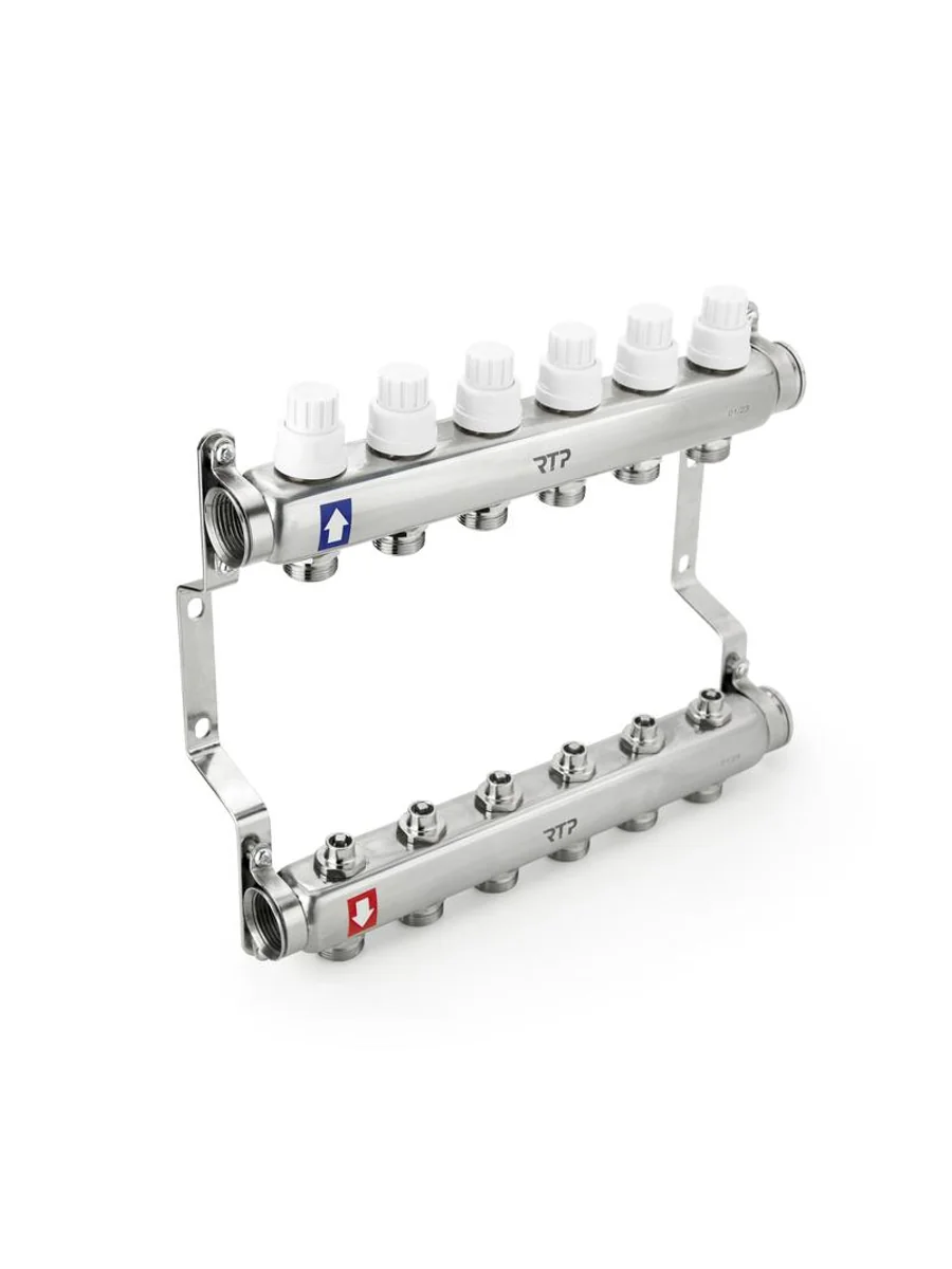 Группа коллекторная 1дюйм х 6 вых. евроконус 3/4дюйм с ручн. регулир. клапан. и кронштейном нерж. сталь SUS 304 RTP 39460