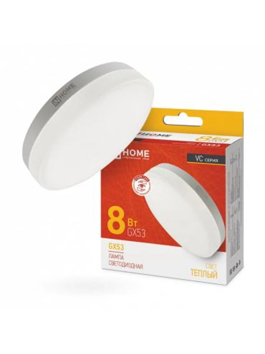 Лампа светодиодная LED-GX53-VC 8Вт таблетка 3000К тепл. бел. GX53 760лм 230В IN HOME 4690612020723 - купить в KeepBuilding | KeepBuilding