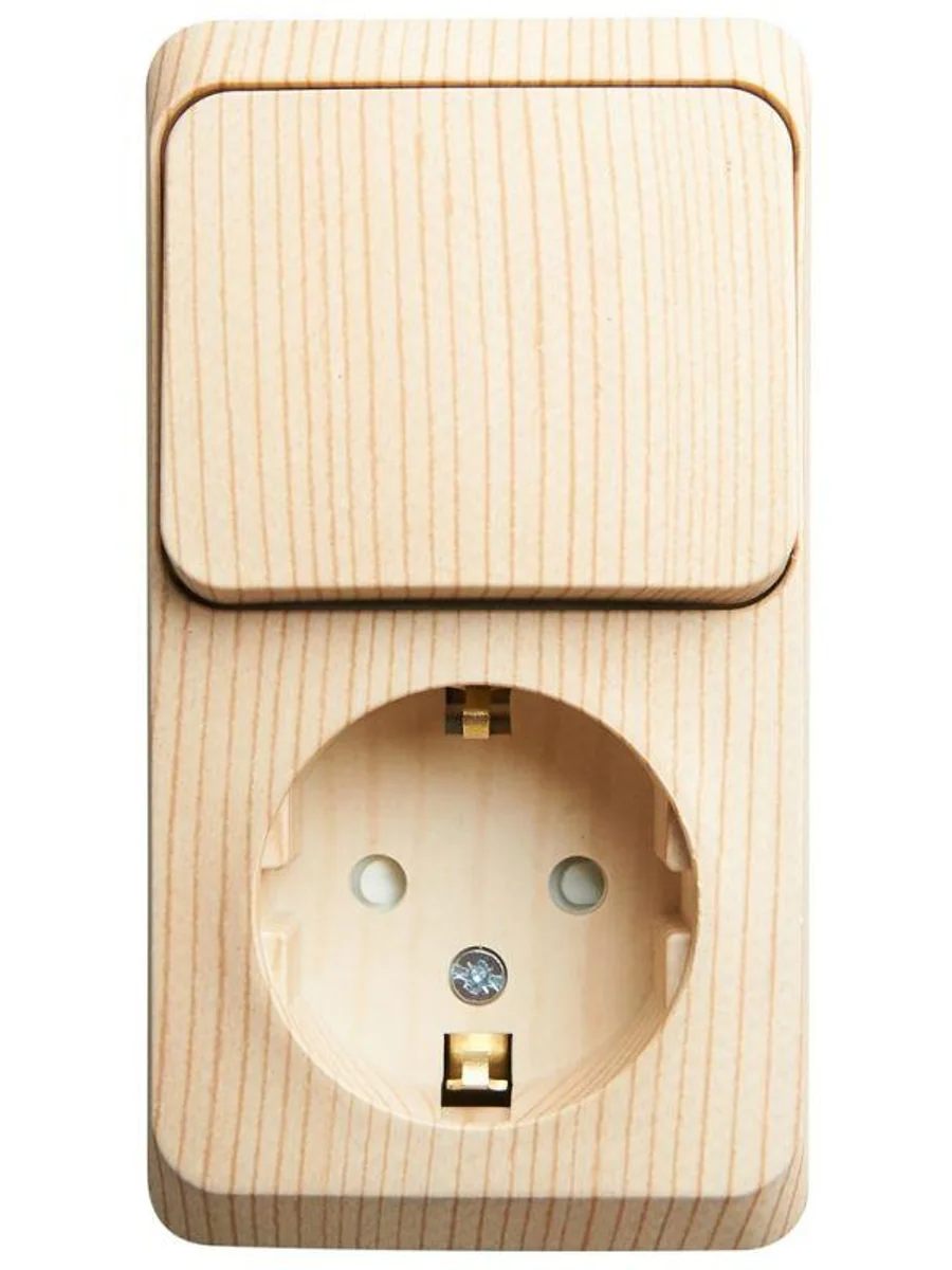 Блок Systeme Electric (ранее Schneider Electric) ЭТЮД (сосна, открытой установки) предназначен для применения в сетях до 250В, состоит из розетки на 16А с заземлением и шторками и одноклавишного выключателя на 10А. Он удобен в применении и отлично подходит для коридора. Заземление обеспечивает безопасность при косвенном прикосновении. Изделия цвета Сосна обладают уникальным рисунком, напоминающим древесный сруб. Сделано в России.