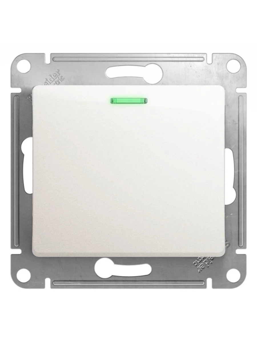 Механизм Systeme Electric (ранее Schneider Electric) серии Glossa (цвет перламутр) выключателя 1-клавишного с подсветкой подходит для сетей 250 В, на ток 10 А. - Благодаря современной светодиодной подсветке зеленого цвета изделие легко найти в темноте. - Выполнен из материала PС+ASA, стойкого к УФ-излучению и появлению царапин. - Эргономичные клеммы расположены в два ряда: сверху и снизу.