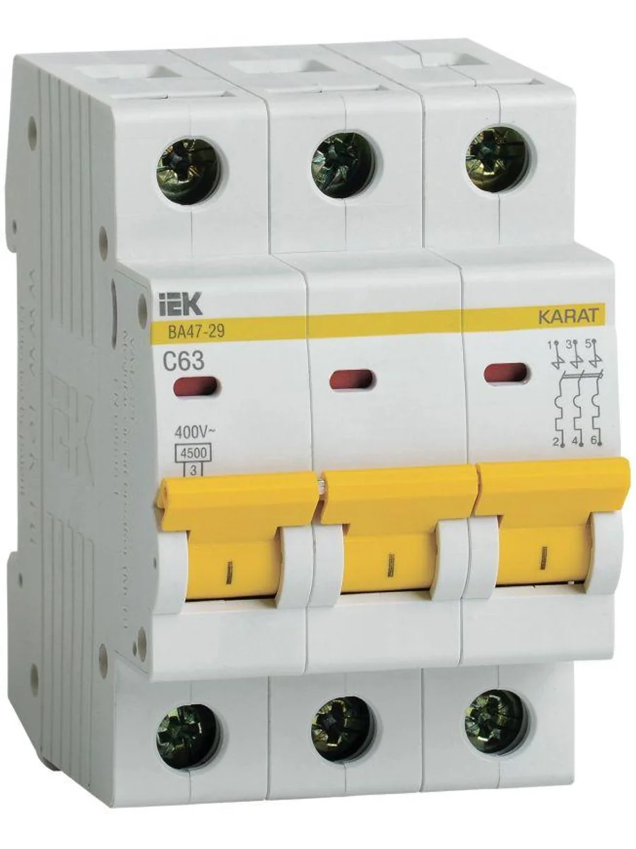 Выключатель автоматический модульный 3п C 63А 4.5кА ВА47-29 KARAT IEK MVA20-3-063-C - купить в KeepBuilding | KeepBuilding