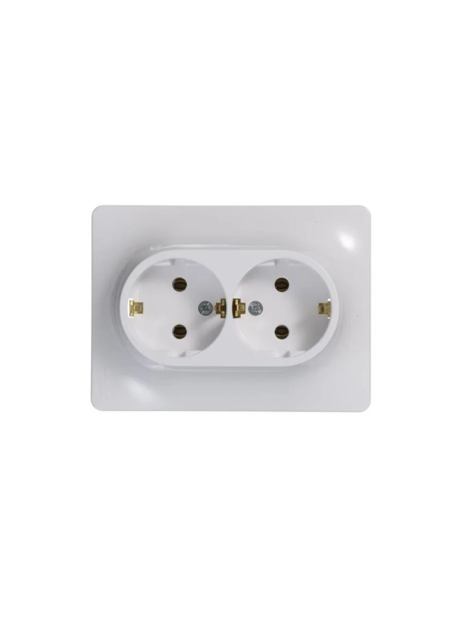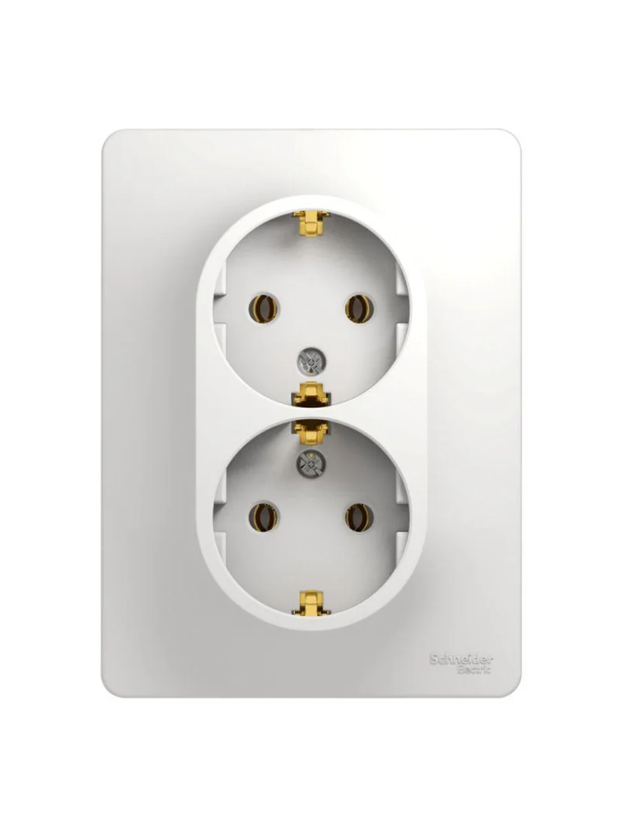 Розетка двойная Systeme Electric (ранее Schneider Electric) серии Glossa (в сборе, цвет белый) с заземлением, без шторок подходит для сетей 250 В, на ток 16 А. - Заземляющий контакт обеспечивает дополнительную защиту от удара электрическим током. При наличии заземления электрический потенциал уходит в землю, защищая человека. - Выполнен из материала PС+ASA, стойкого к УФ-излучению и появлению царапин. - Двойная розетка позволяет подключить два устройства в одном месте.