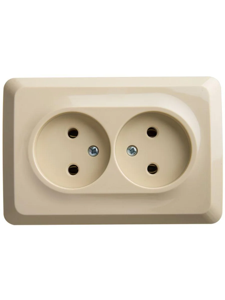 Розетка Systeme Electric (ранее Schneider Electric) ЭТЮД (кремовый, открытой установки) двухместная угловая, без шторок и заземления предназначена для применения в сетях до 250В, на ток до 16А. Двухместная розетка позволяет подключить два устройства в одном месте. Ее конструкция позволяет установить розетку в угол помещения. Сделано в России.