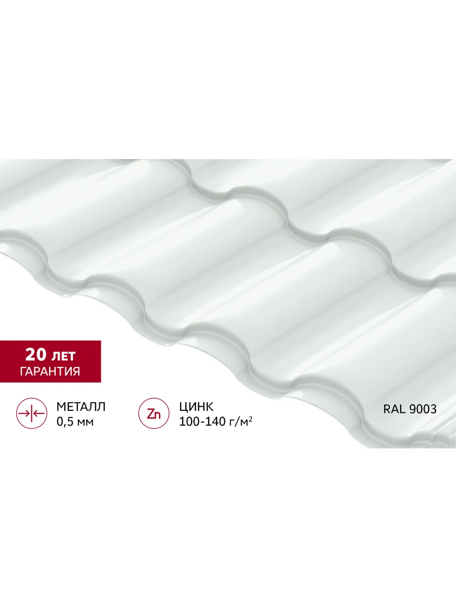 Металлочерепица «Кредо» («Kredo») v01 0,5 Satin RAL 9003 сигнальный белый от компании GrandLine — это высококачественный и надёжный материал для кровли. Она отличается прочностью и долговечностью, что делает её идеальным выбором для обустройства кровли различных зданий и сооружений. Благодаря своей уникальной форме и цвету, металлочерепица «Кредо» придаёт кровле эстетичный и современный вид.