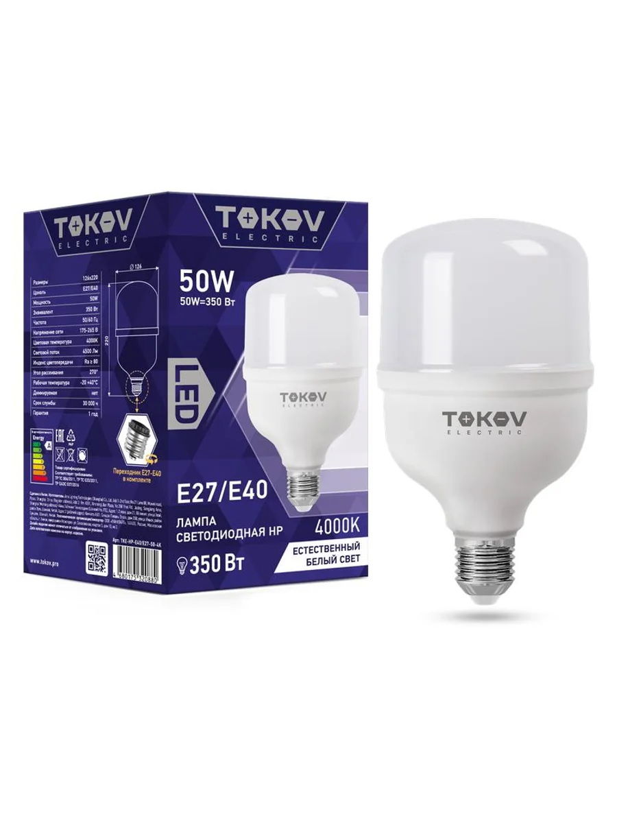 Лампа светодиодная 50Вт HP 4000К Е40/Е27 176-264В TOKOV ELECTRIC TKE-HP-E40/E27-50-4K - купить в KeepBuilding | KeepBuilding