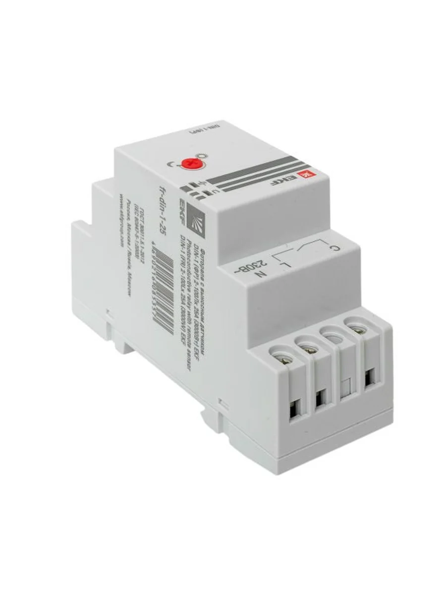 Фотореле серии DIN-1 (ФР) предназначены для автоматического контроля (включения или отключения) освещения в зависимости от уровня освещенности. Включение - при снижении освещенности (сумерки) и отключение - при увеличении освещенности (рассвет). Порог срабатывания может быть изменен с помощью регулятора на передней панели (от 2Лк до 100Лк). Преимущества: Датчик в комплекте Максимальный ток нагрузки, 25А Широкий диапазон регулировки освещенности Модульное исполнение на DIN-рейку