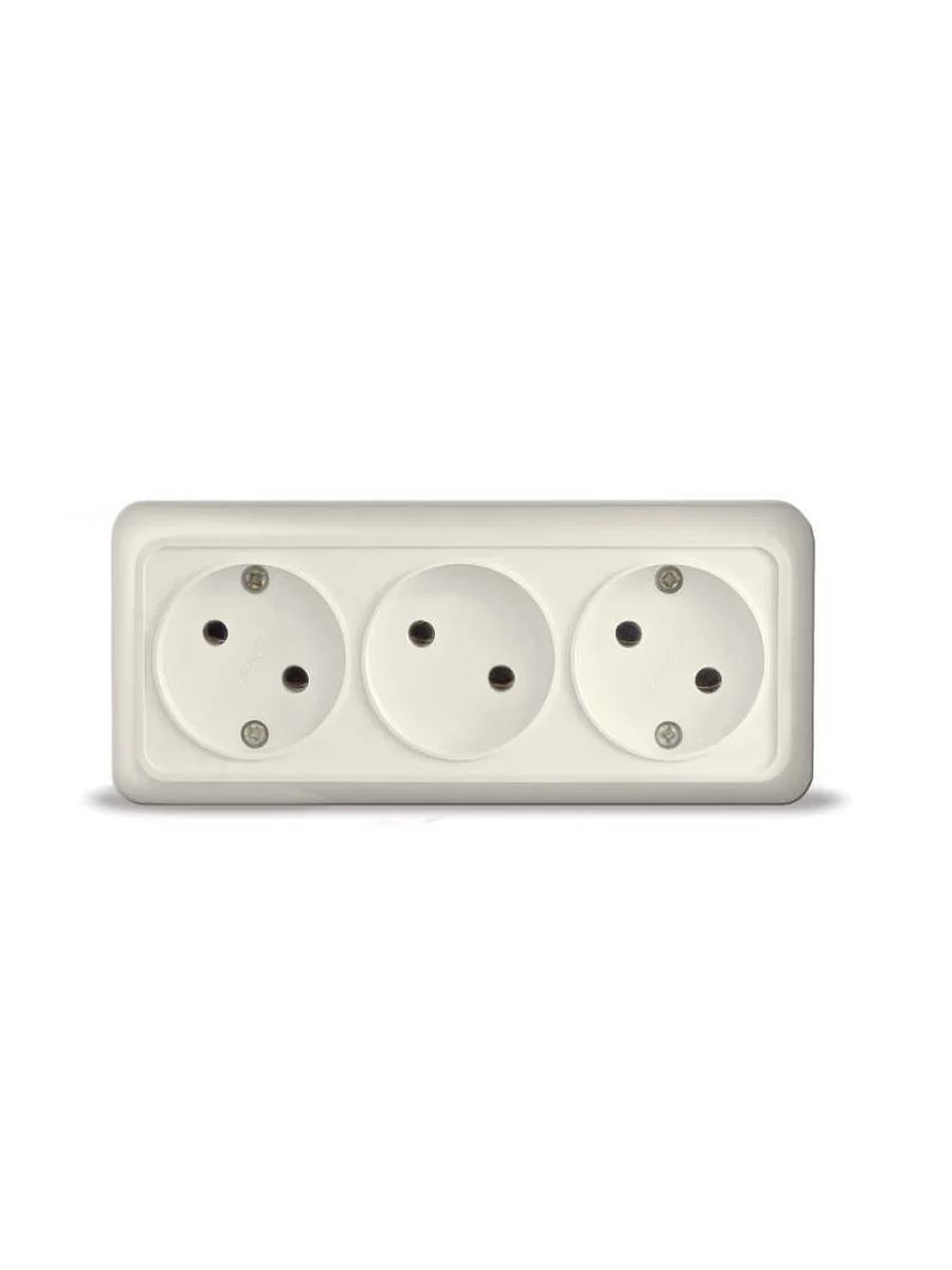 Розетка 3-м ОП Олимп без заземл. беж. UNIVersal 1166 представлена потребителю в серии "Олимп". Серия "Олимп" для открытой установки сочетает в себе функциональность с практичностью. Изделия данной серии удачно вписываются в интерьер любого помещения и производят приятное впечатление. Корпус представляет собой форму из пластика, бежевого цвета. Контактная группа изделий изготовлена из латуни. Монтируется на поверхность стены. Рекомендованы для жилых помещений и административных зданий. Срок службы составляет 5 000 циклов включения/отключения.