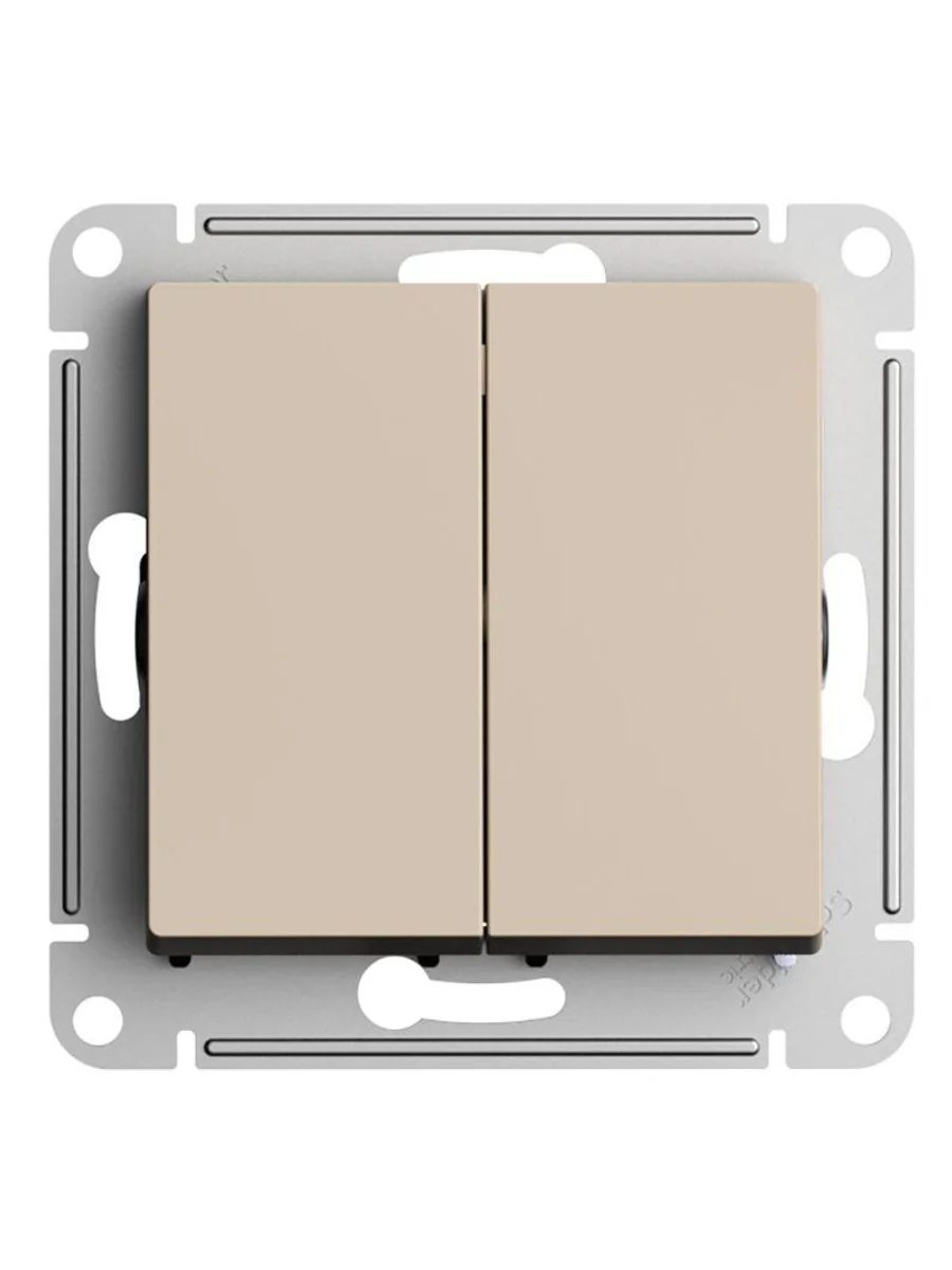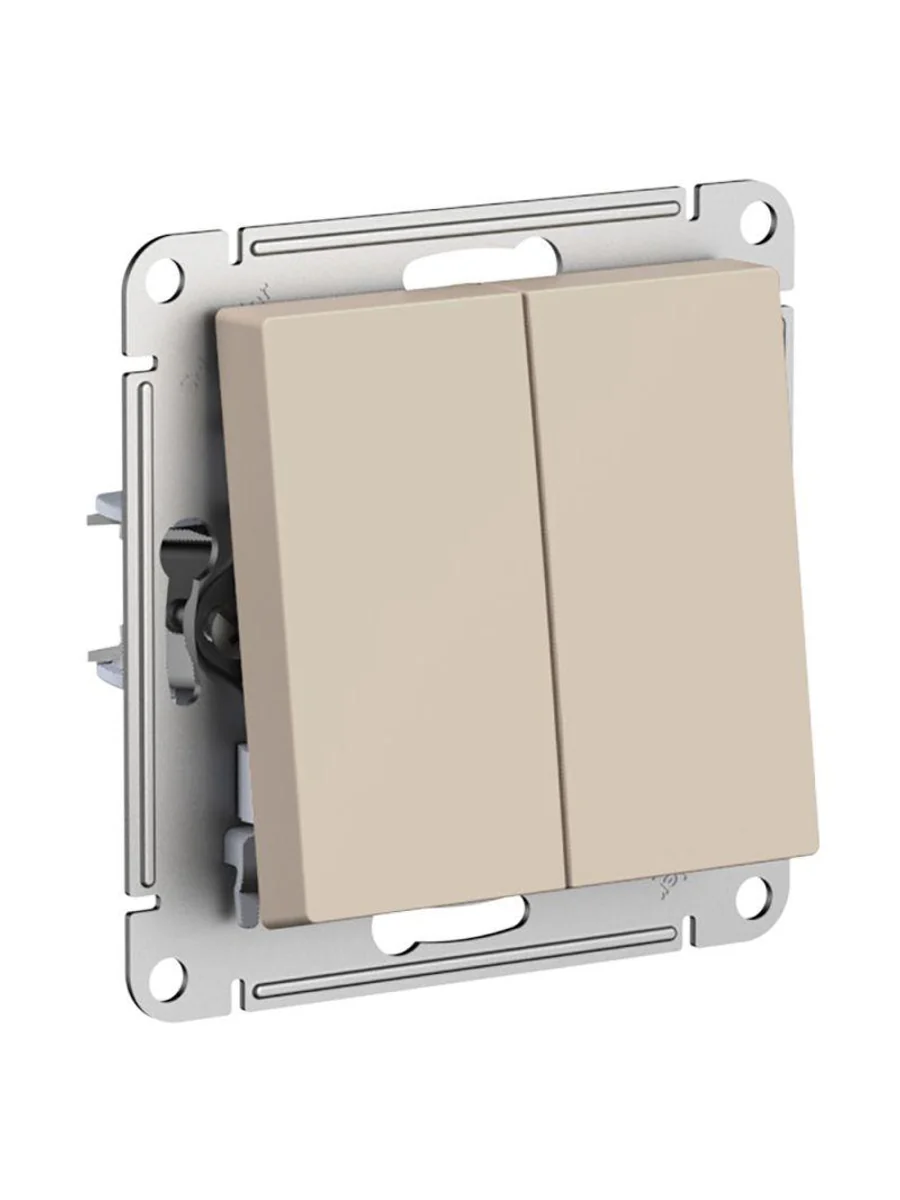 Механизм выключателя 2-клавишного Systeme Electric (ранее Schneider Electric) серии AtlasDesign в цвете песочный подходит для сетей 250 В, на ток 10 А. Двухклавишный выключатель позволяет управлять двумя источниками света с одной точки. Лицевые детали из качественного ABS-пластика, устойчивого к царапинам и УФ-излучению. Усиленные прямые монтажные лапки для лучшей фиксации механизма в монтажной коробке.