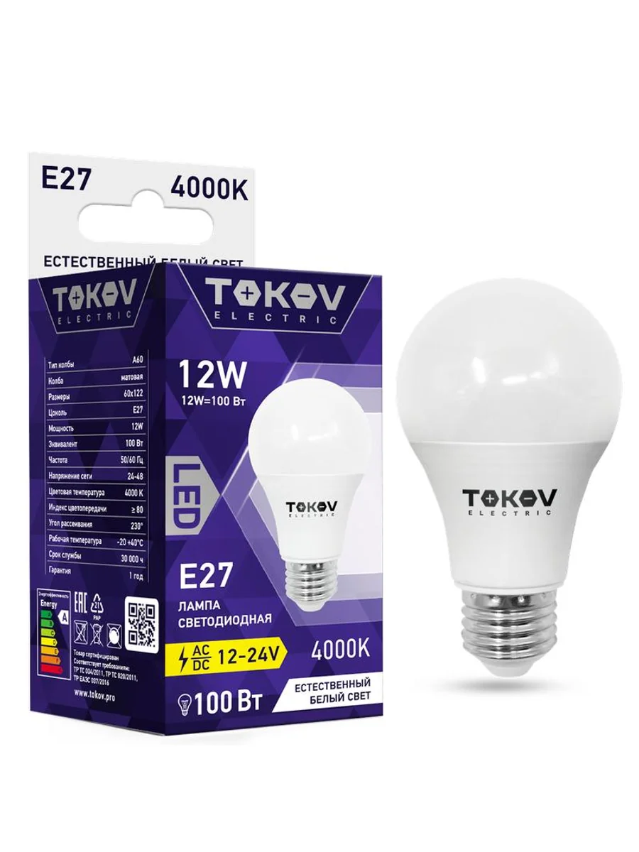 Лампа светодиодная низковольтная 12Вт А60 4000К Е27 12/24В TOKOV ELECTRIC TKE-A60-E27-12-4K-12/24 - купить в KeepBuilding | KeepBuilding