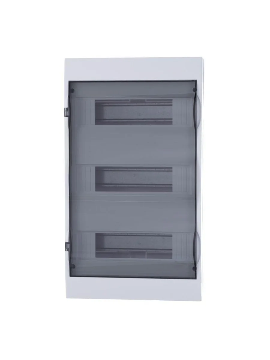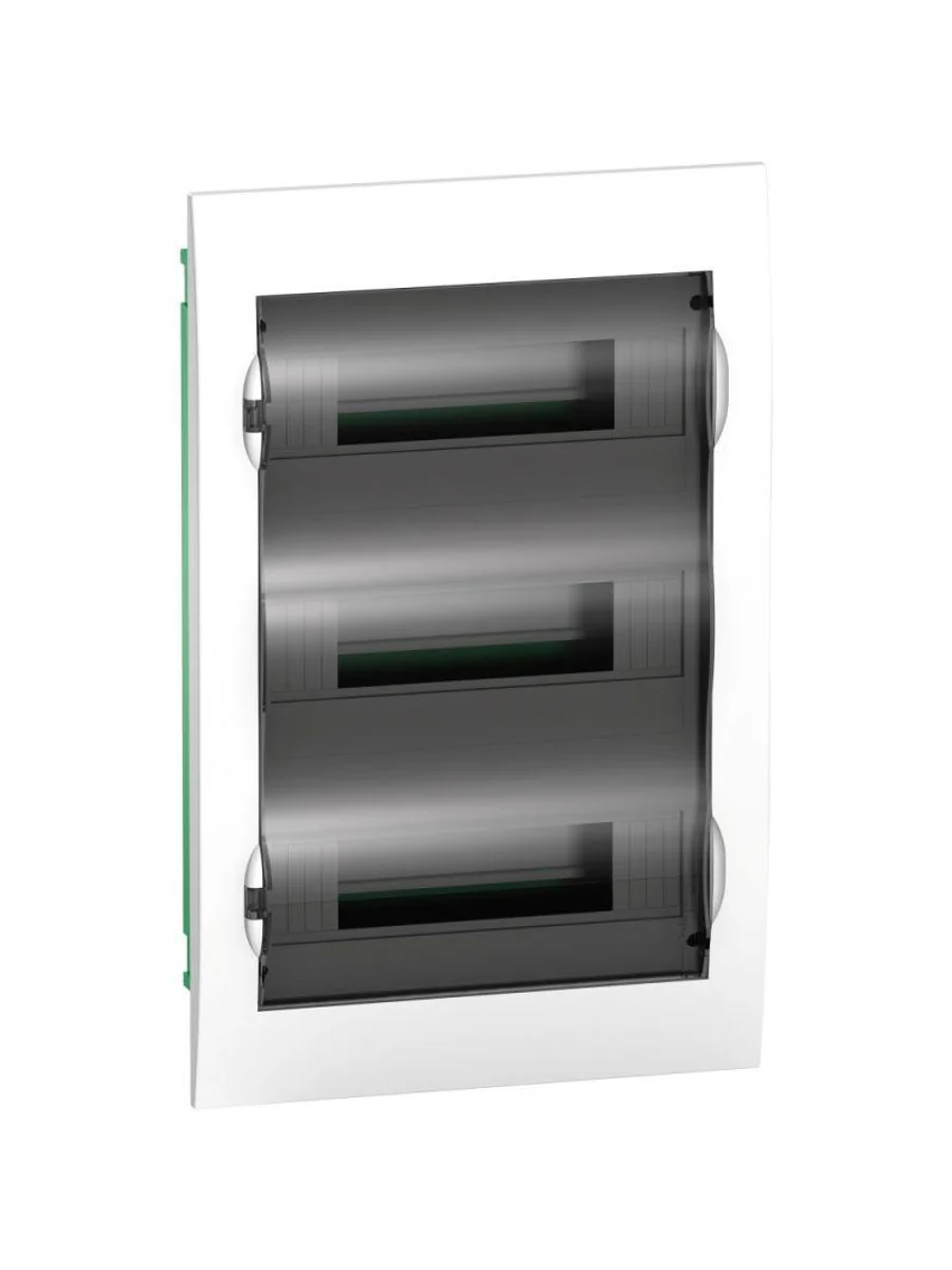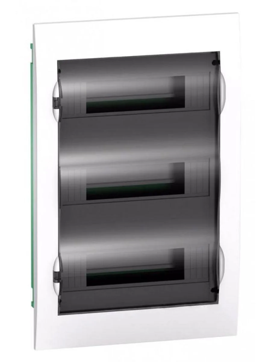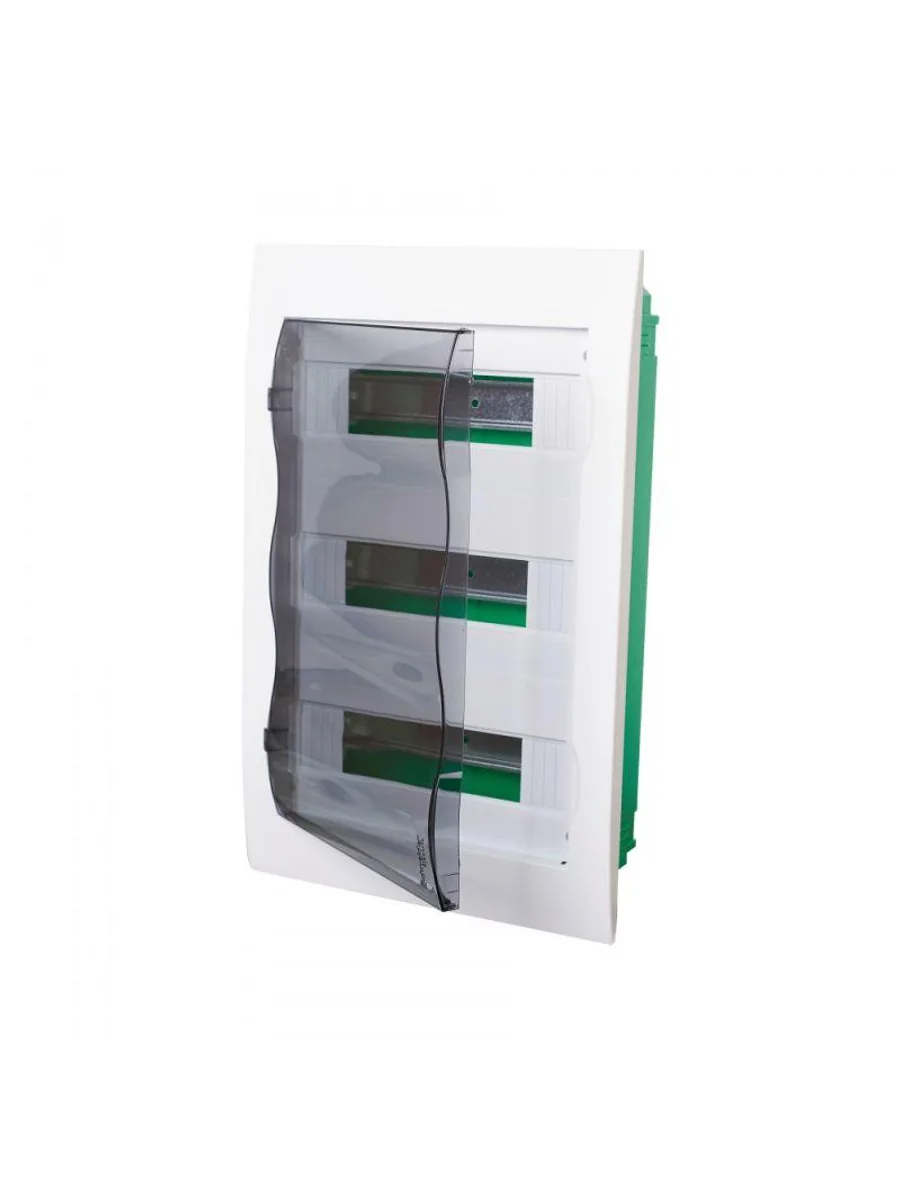 Распределительный щиток Systeme Electric серии City9 Box предназначен для установки аппаратов защиты и управления бытовой электроустановки. Щиток встраивается в стену, имеет 3 DIN-рейки для установки 36 аппаратов по 18 мм. Прозрачная дверь щитка может быть установлена с правой или левой стороны. Щит Systeme Electric City9 Box на 100% совместим с модульным оборудованием DEKraft и Systeme Electric (ранее Schneider Electric MIP22312S).
