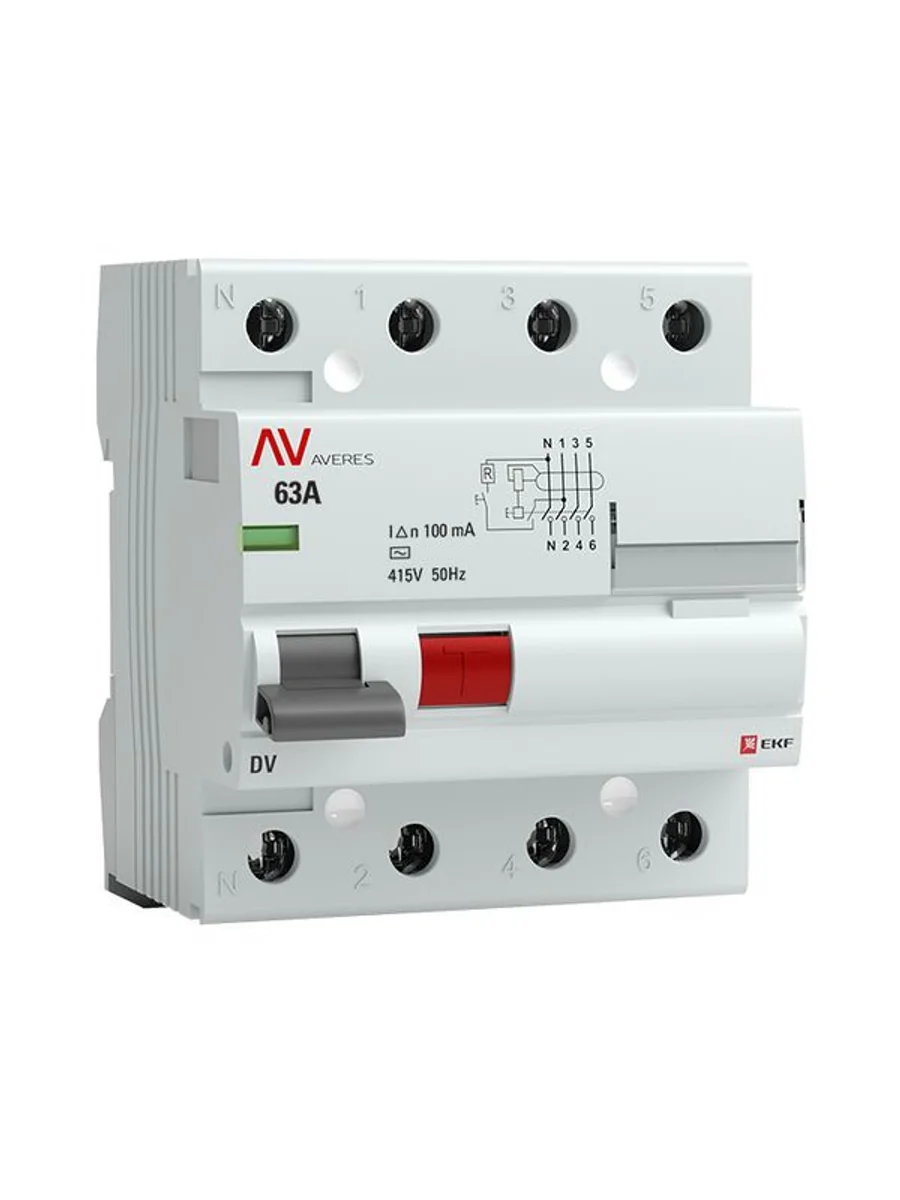 Выключатель дифференциального тока (УЗО) 4п 63А 100мА тип AC DV AVERES EKF rccb-4-63-100-ac-av - купить в KeepBuilding | KeepBuilding