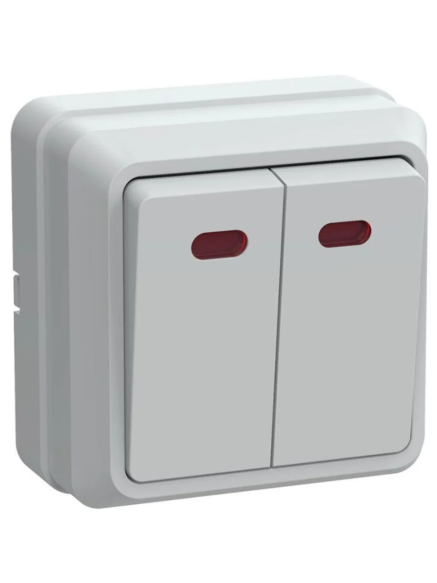 Выключатель 2-кл. ОП Октава 10А IP20 ВС20-2-1-ОБ с индикацией бел. GENERICA EVO21-K01-10-DC