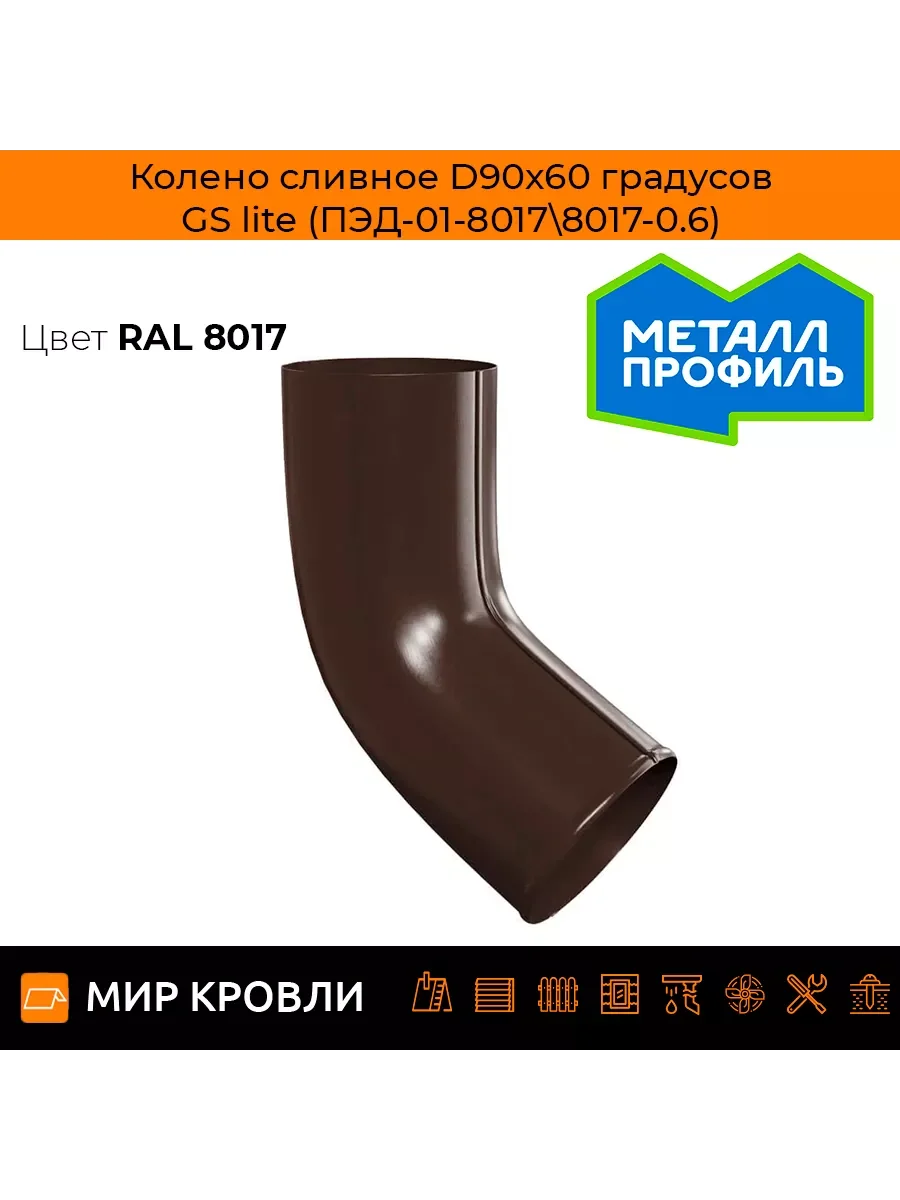 Колено трубы D90х60 градусов GS lite