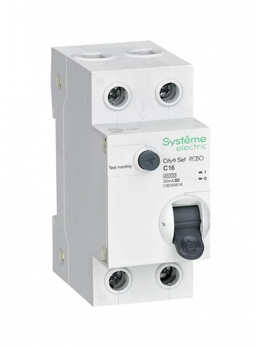 Выключатель автоматический дифференциального тока 2п (1P+N) C 16А 30мА тип A 4.5кА City9 Set 230В SE C9D55616