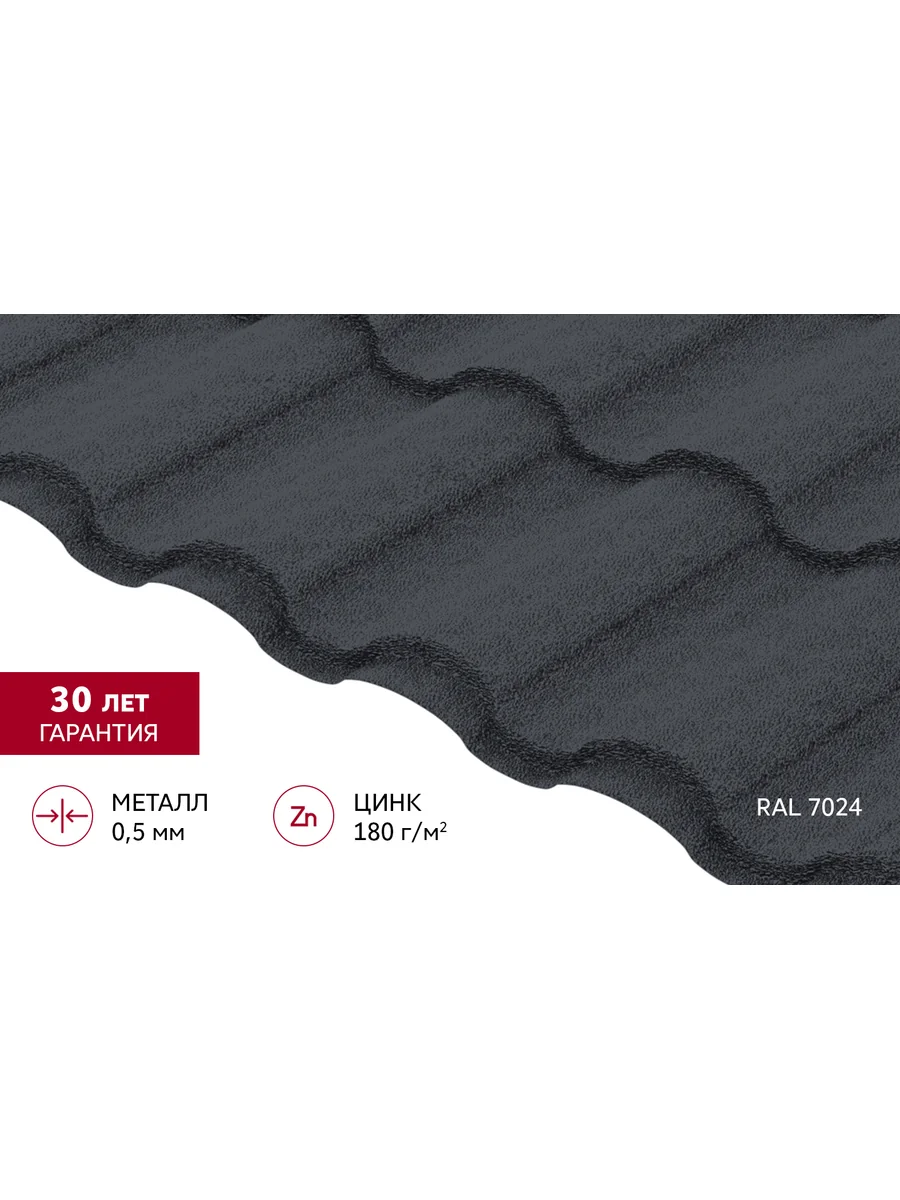 Металлочерепица "Кредо" ("Kredo") v01 0,5 PurLite Matt RAL 7024 мокрый асфальт