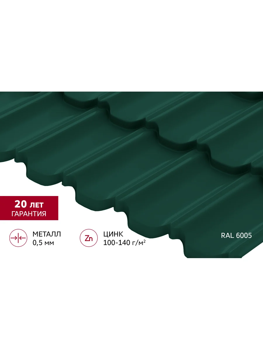 Металлочерепица "Квинта плюс3D" ("Kvinta plus3D") 0,5 Satin RAL 6005 зеленый мох