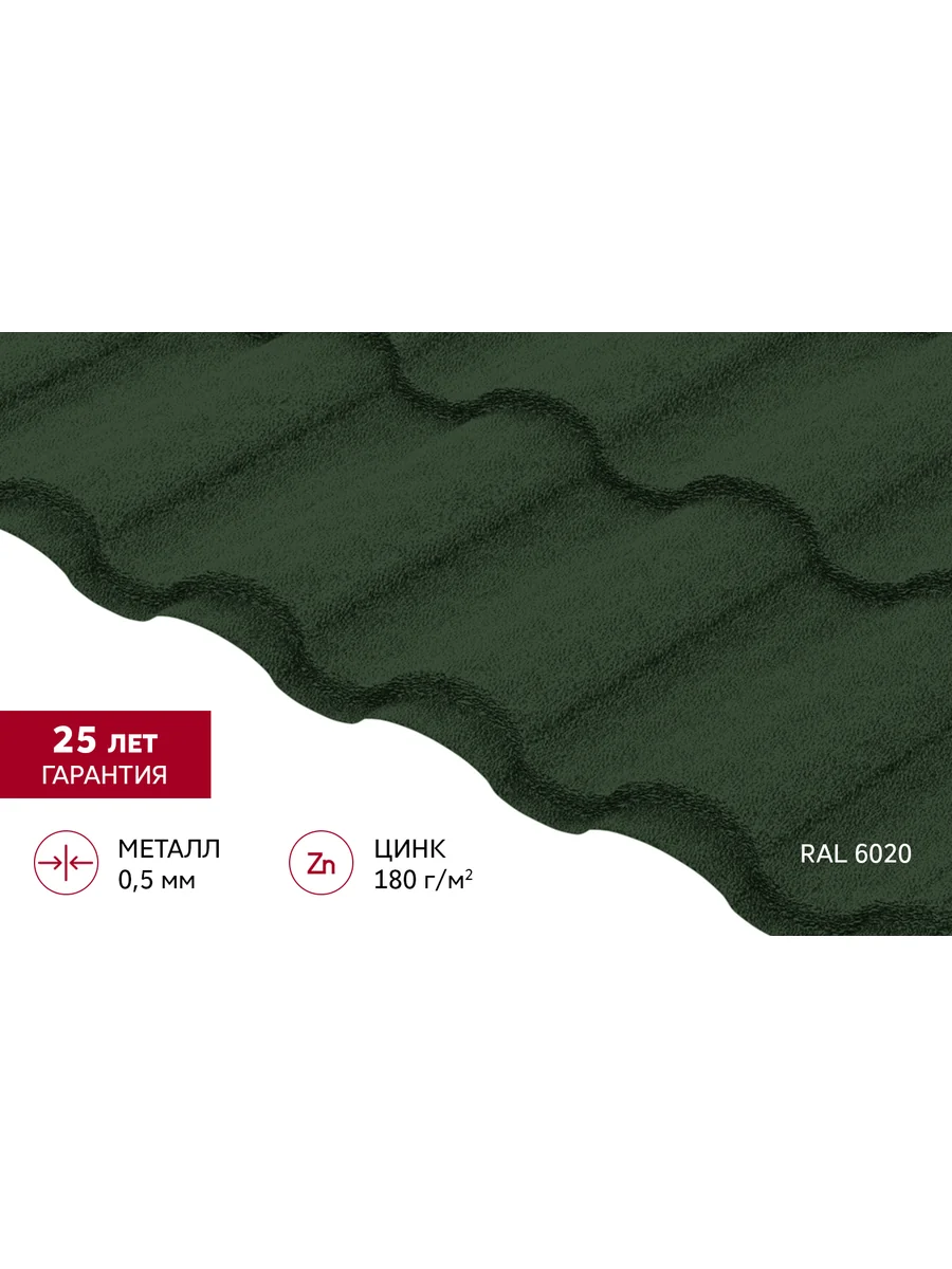 Металлочерепица "Кредо" ("Kredo") v01 0,5 Satin Matt TX RAL 6020 хромовая зелень