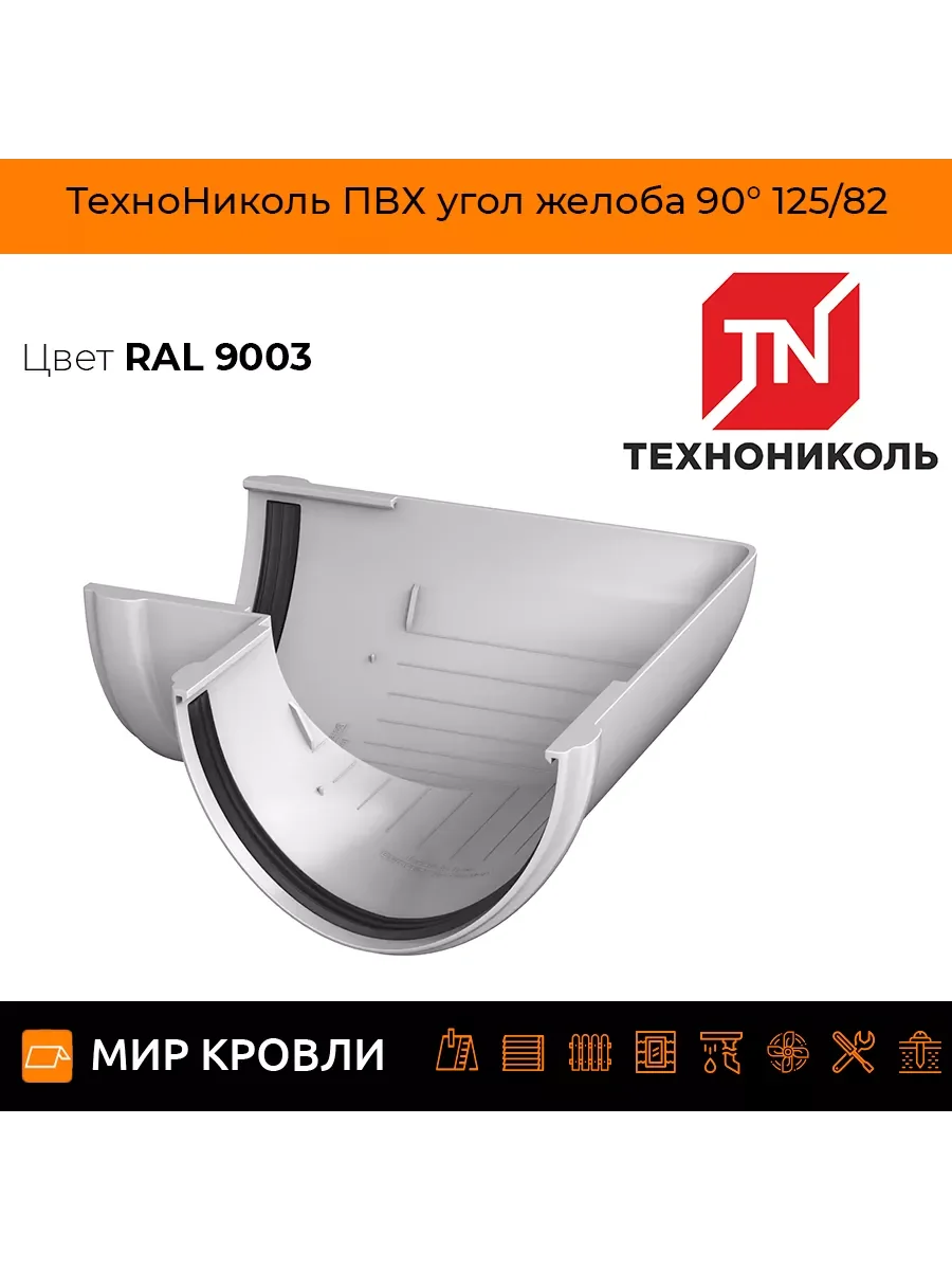 ТН ПВХ угол желоба 90°, белый, шт