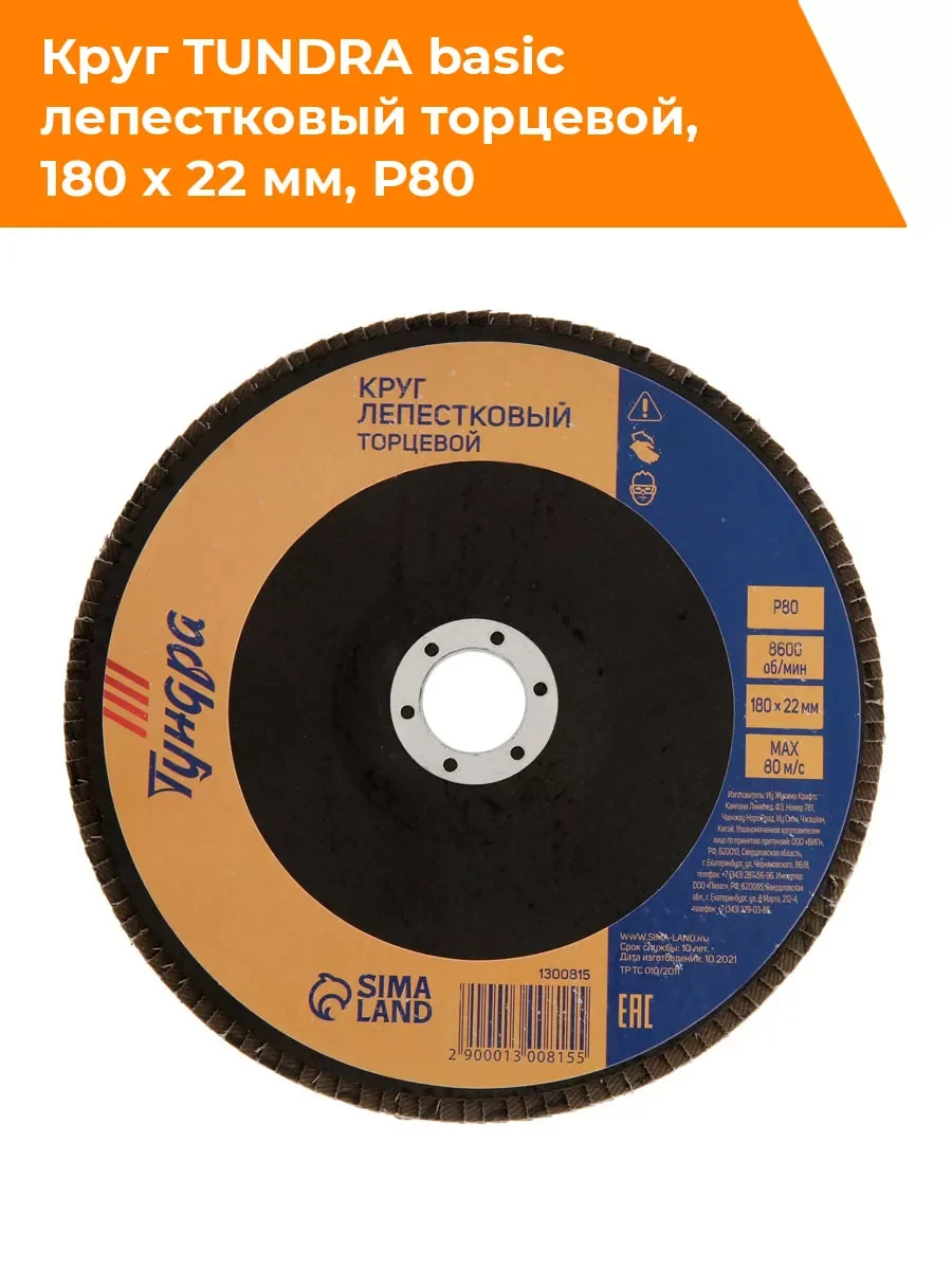 Круг лепестковый торцевой, 180 х 22 мм, Р80