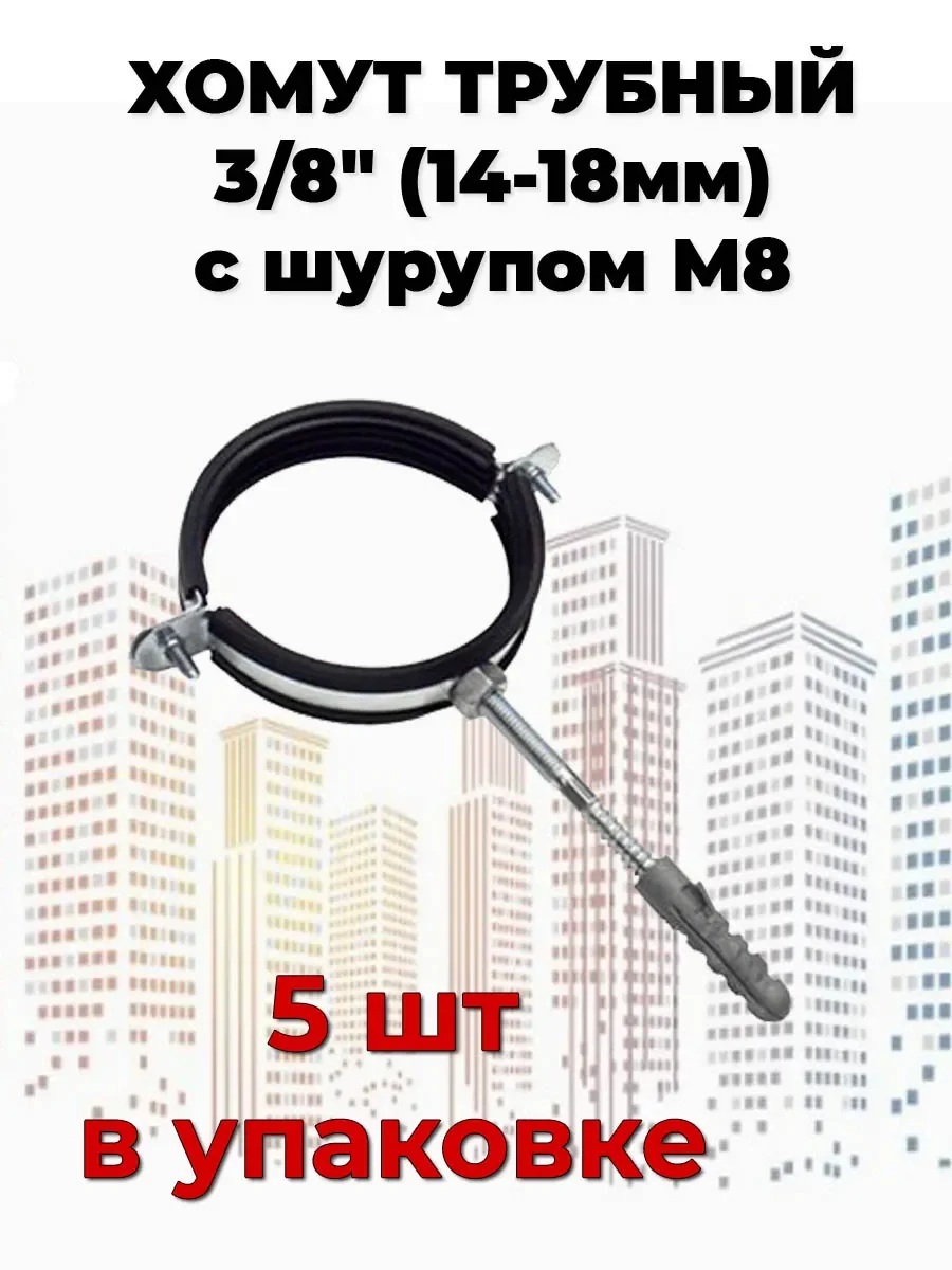 Хомут трубный с шурупом 3/8 (14-18мм) - 5шт