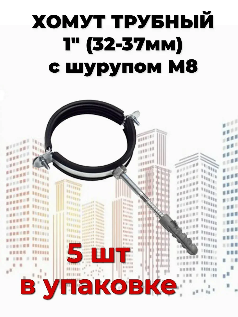 Хомут трубный с шурупом 1 (32-37мм) - 5шт
