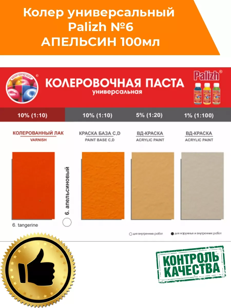 Колер для краски Палиж № 6 апельсин 100мл | KeepBuilding