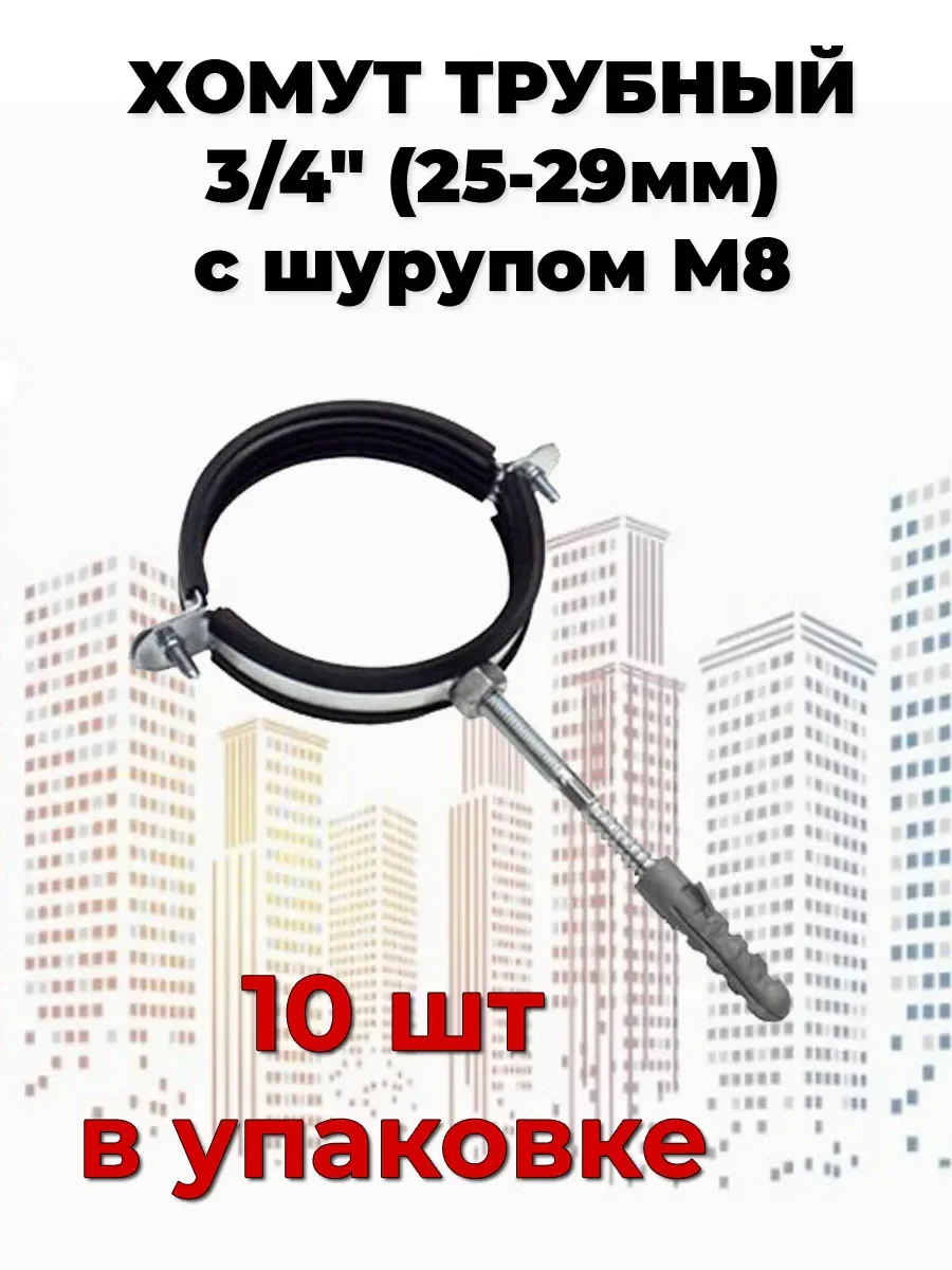 Хомут трубный с шурупом 3/4 (25-29мм) - 10шт
