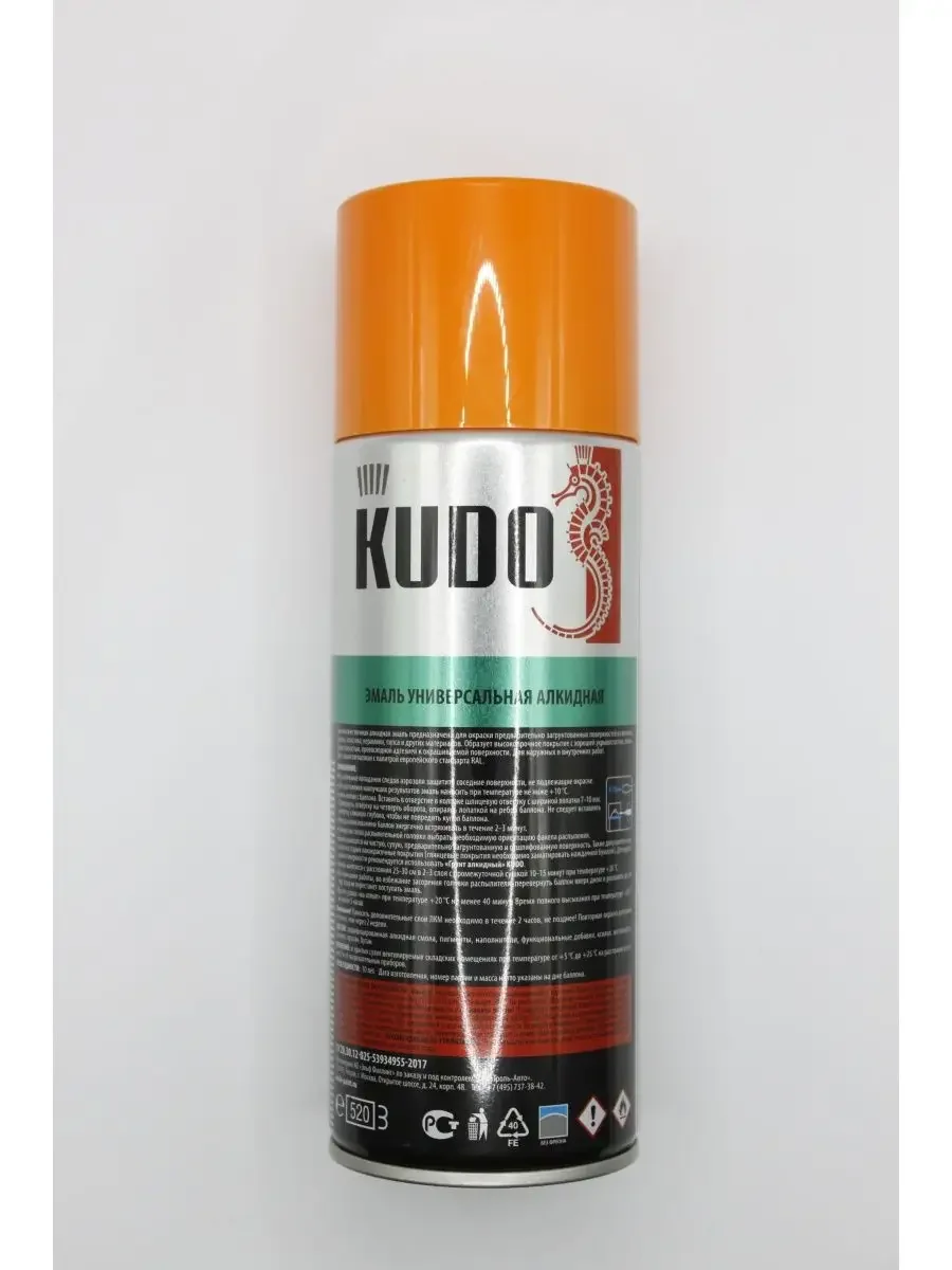 Краска аэрозольная KUDO оранжевая RAL 2004, 520мл. Высококачественная универсальная алкидная аэрозольная краска (эмаль) предназначена для окраски поверхностей из металла, дерева, пластика, гипса и других материалов. Аэрозольная краска легко наносится на труднодоступные места. Для наружных и внутренних работ.Цвета на мониторе могут отличаться от реальных.
