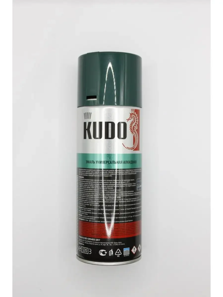 Краска аэрозольная KUDO темно-зеленая RAL 6016, 520мл. Высококачественная универсальная алкидная аэрозольная краска (эмаль) предназначена для окраски поверхностей из металла, дерева, пластика, гипса и других материалов. Аэрозольная краска легко наносится на труднодоступные места. Для наружных и внутренних работ.Цвета на мониторе могут отличаться от реальных.
